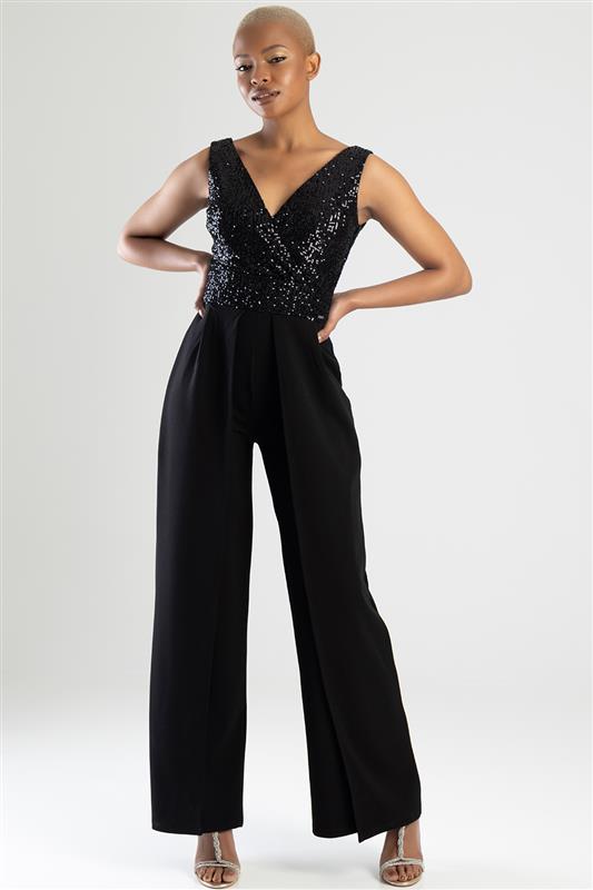 Jumpsuit With Wrap Bodice - Black