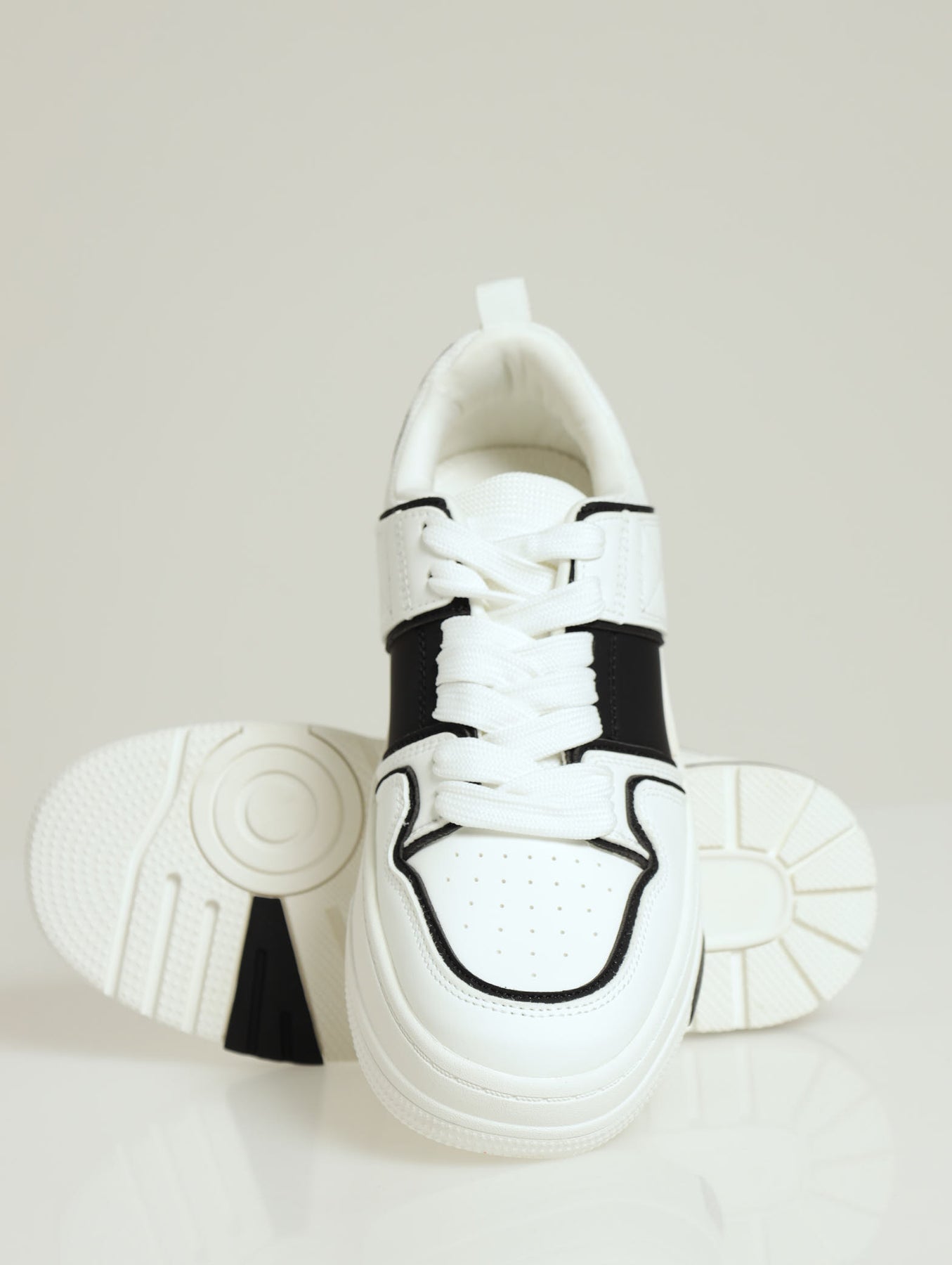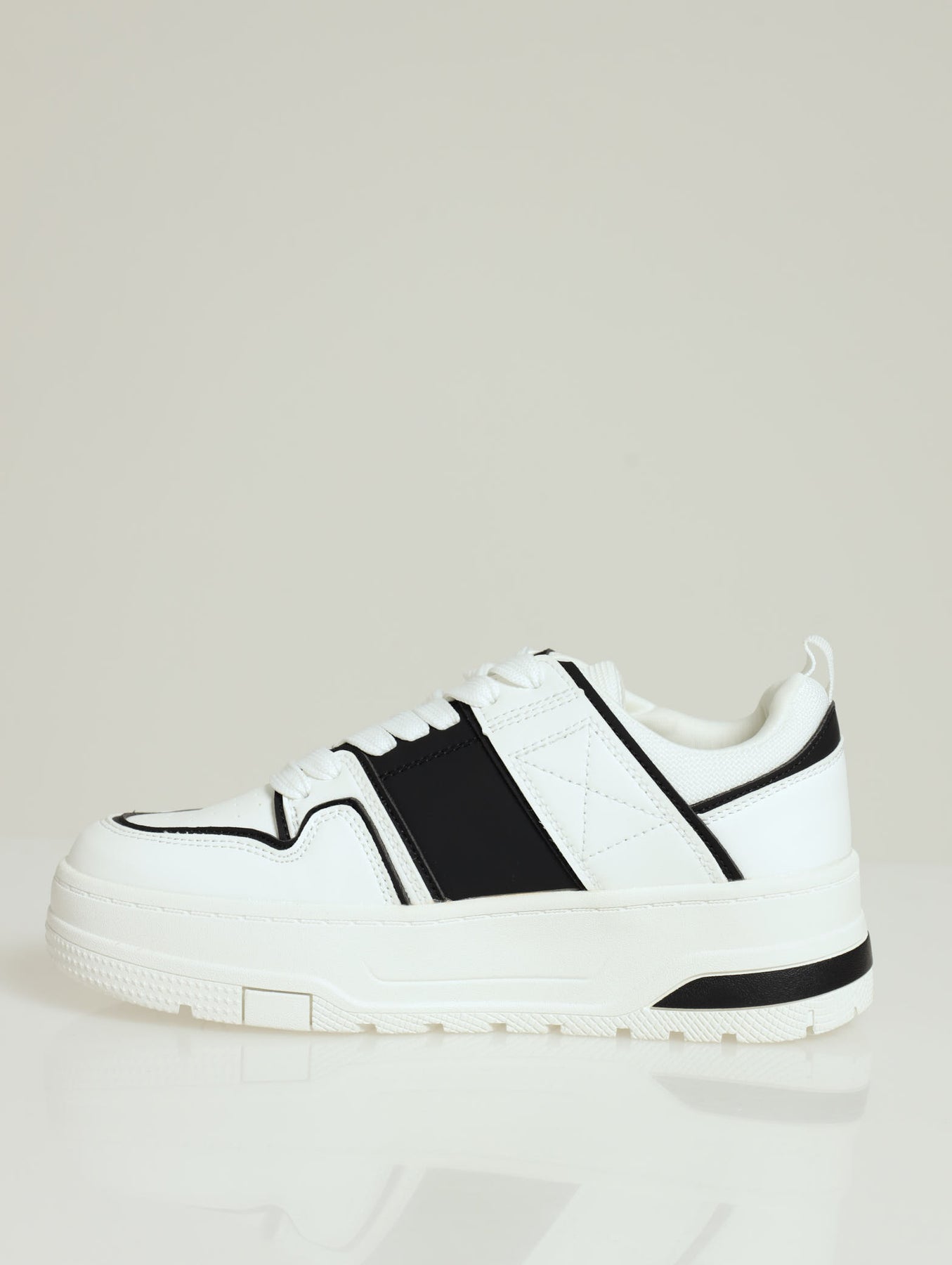 Keisha Chunky Side Panel Lace Up Sneaker - White/Black