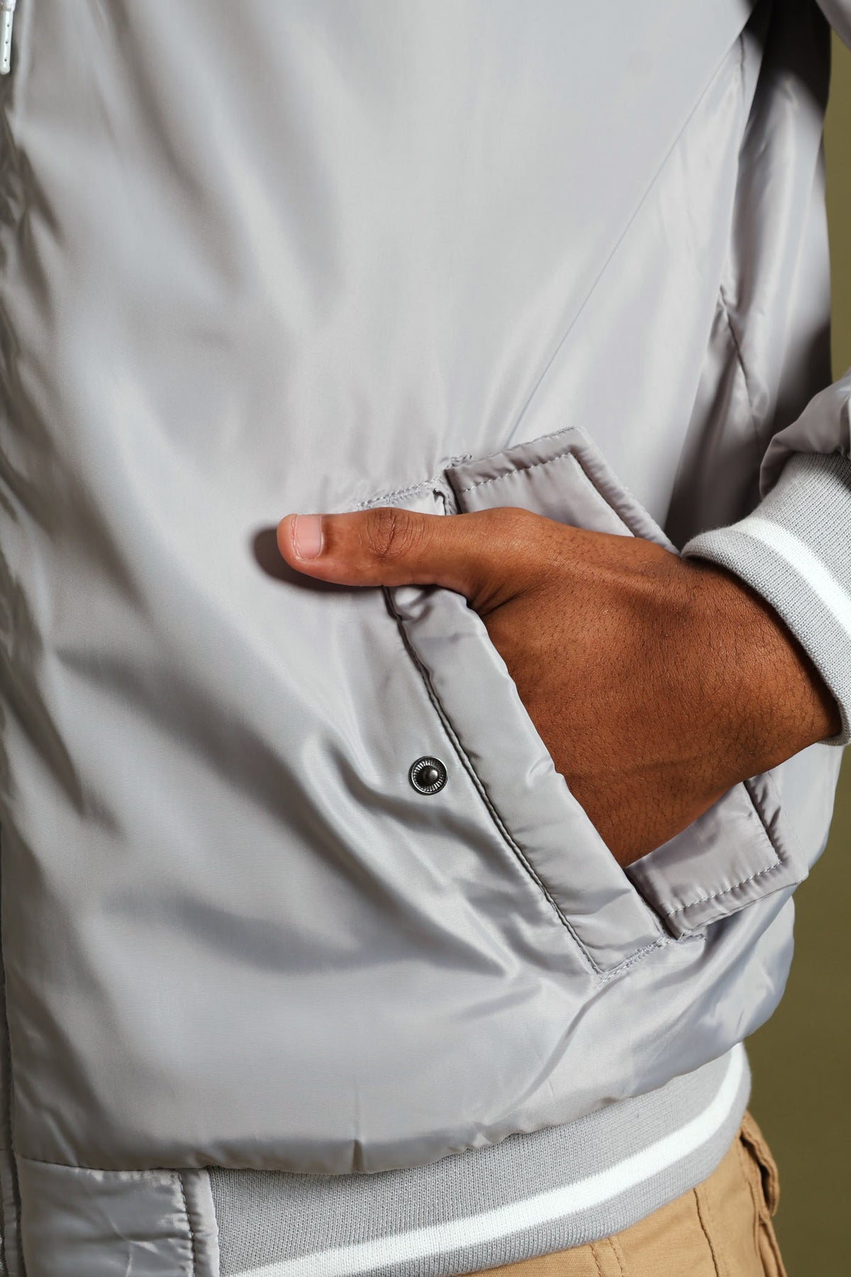 Knit Hood Bomber Jacket - Grey