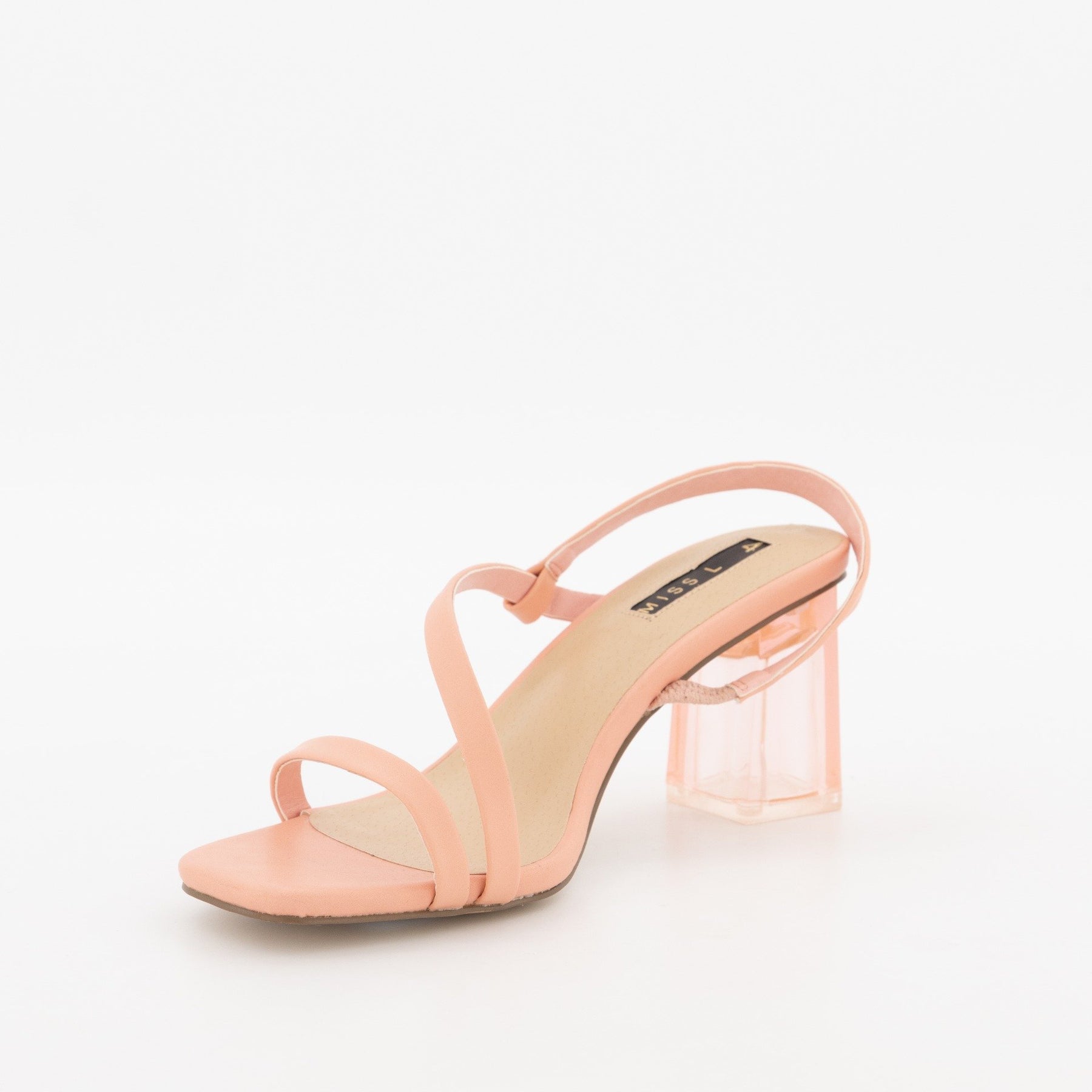 Ladies Coloured  Back Strap Smokey Perspex Block Heel - Coral