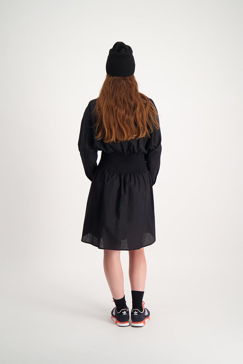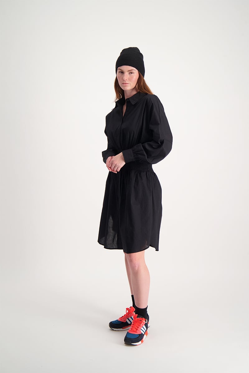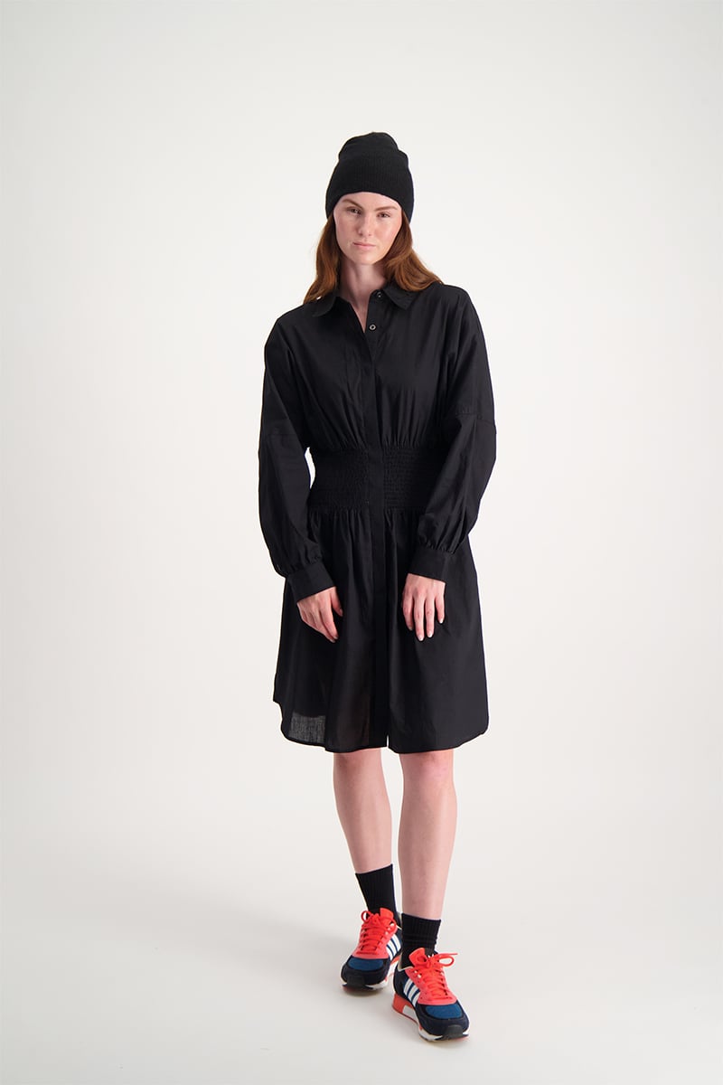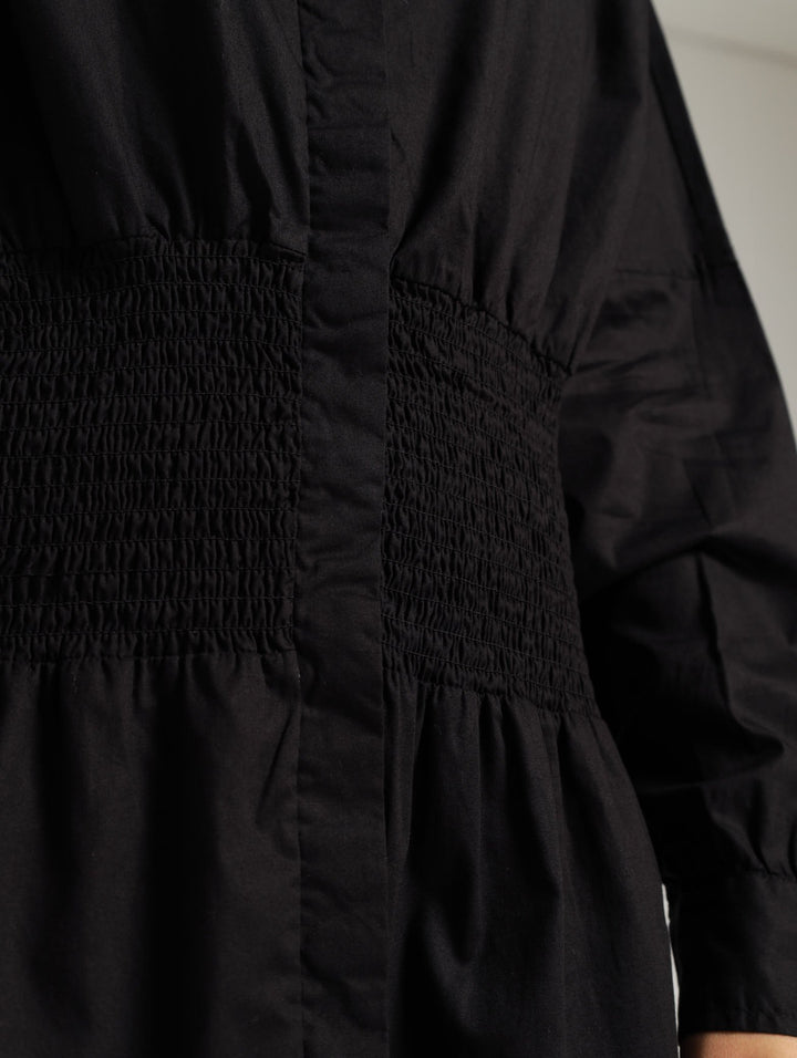Ladies Fashion Shirt Dress With Embrodiery - Black