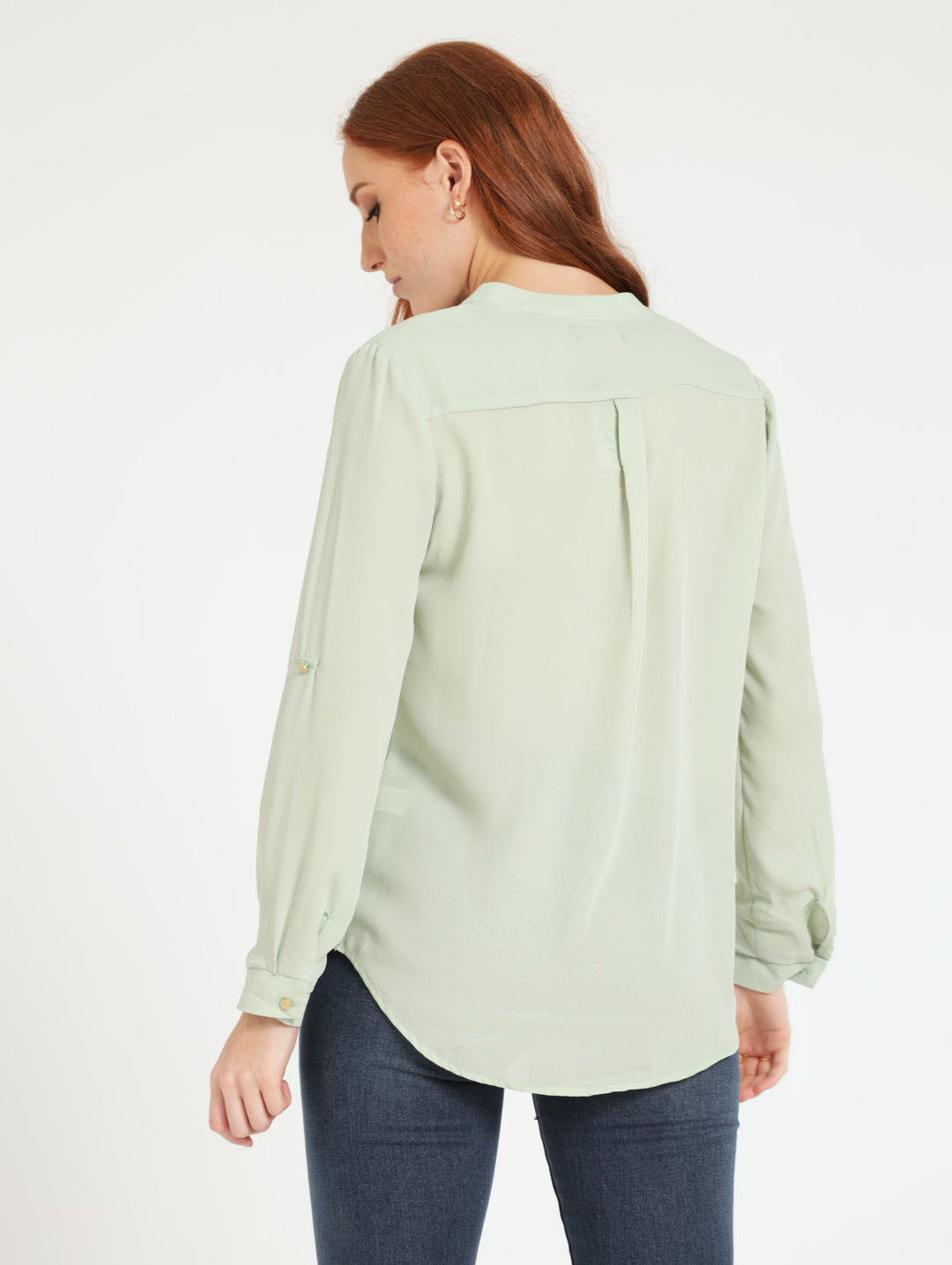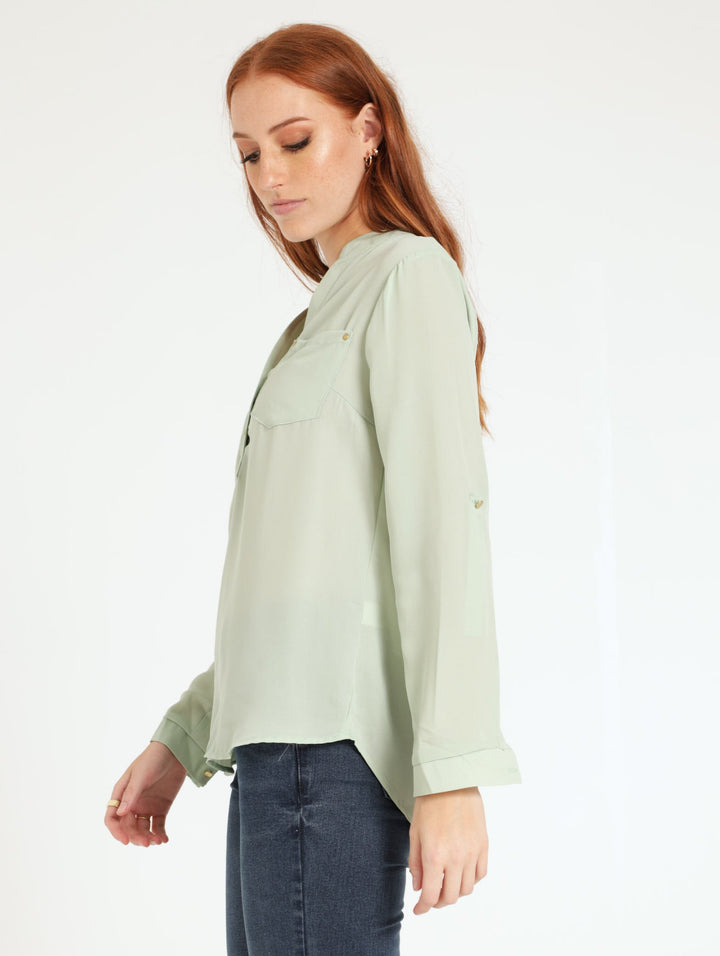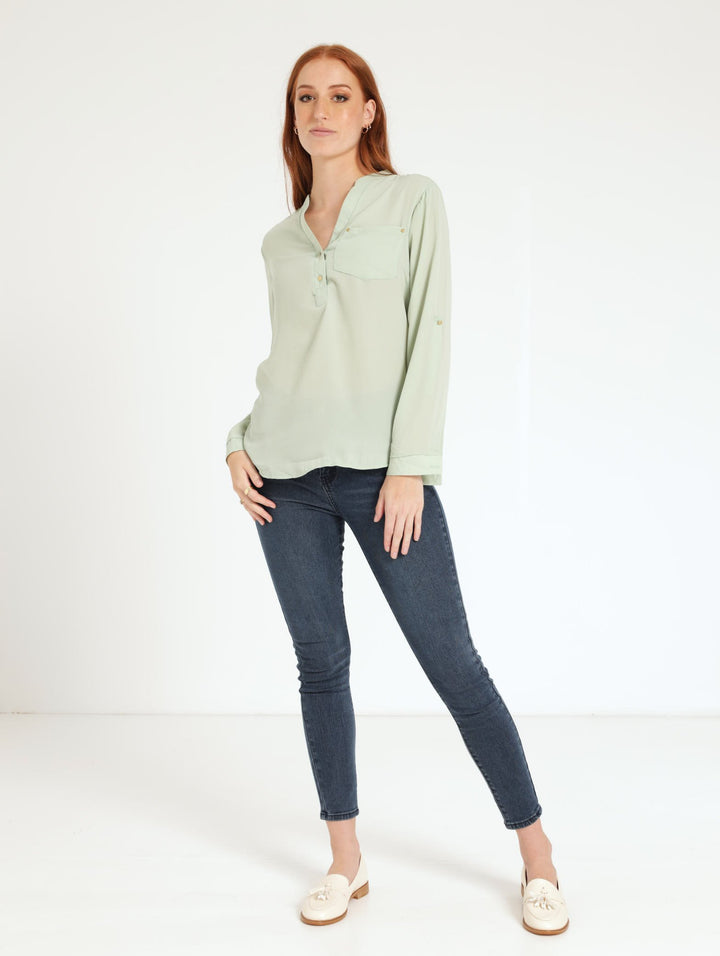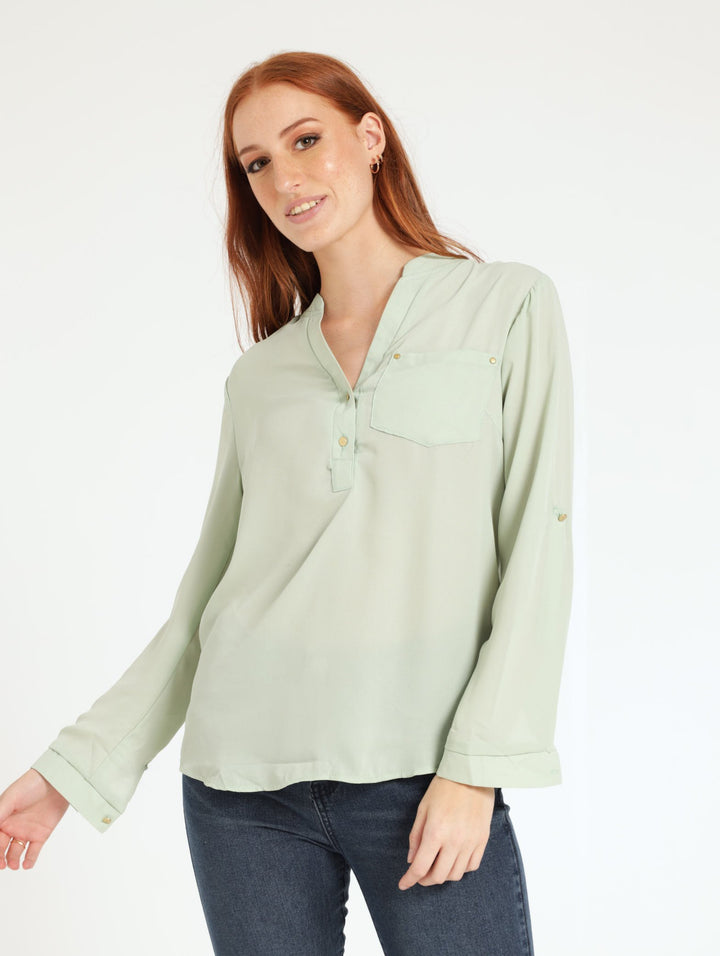 Ladies Long Sleeve Metal Trim Henley Top - Mint