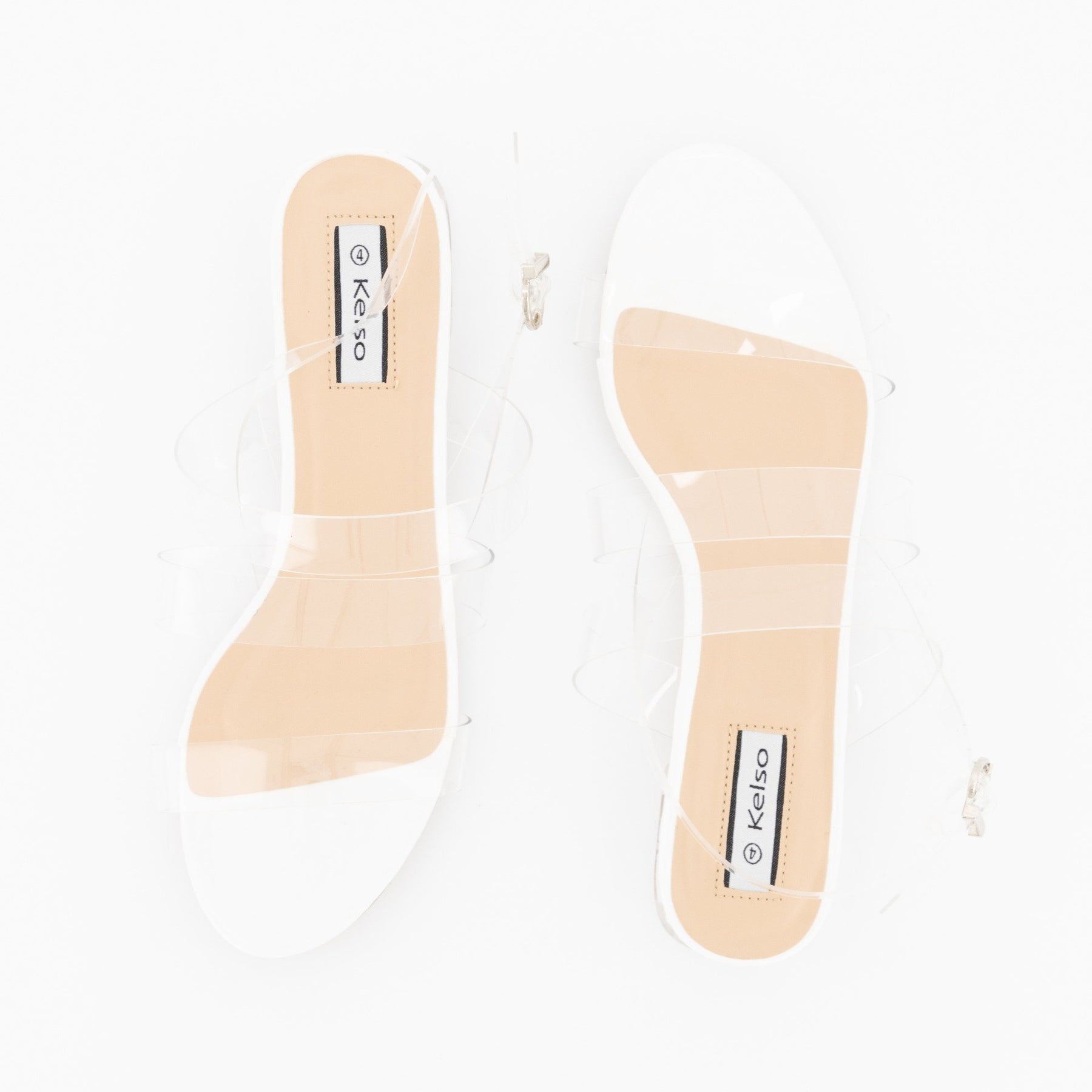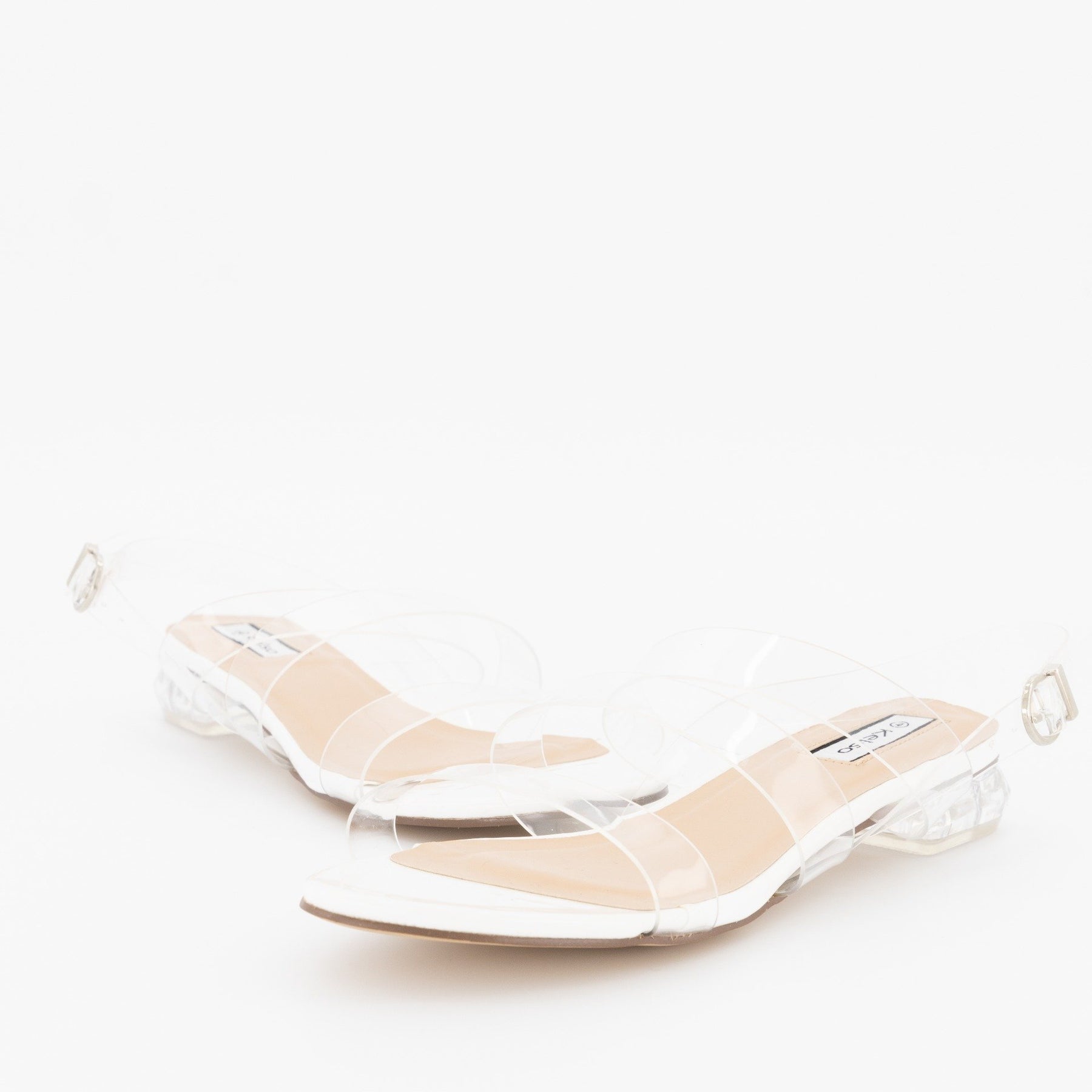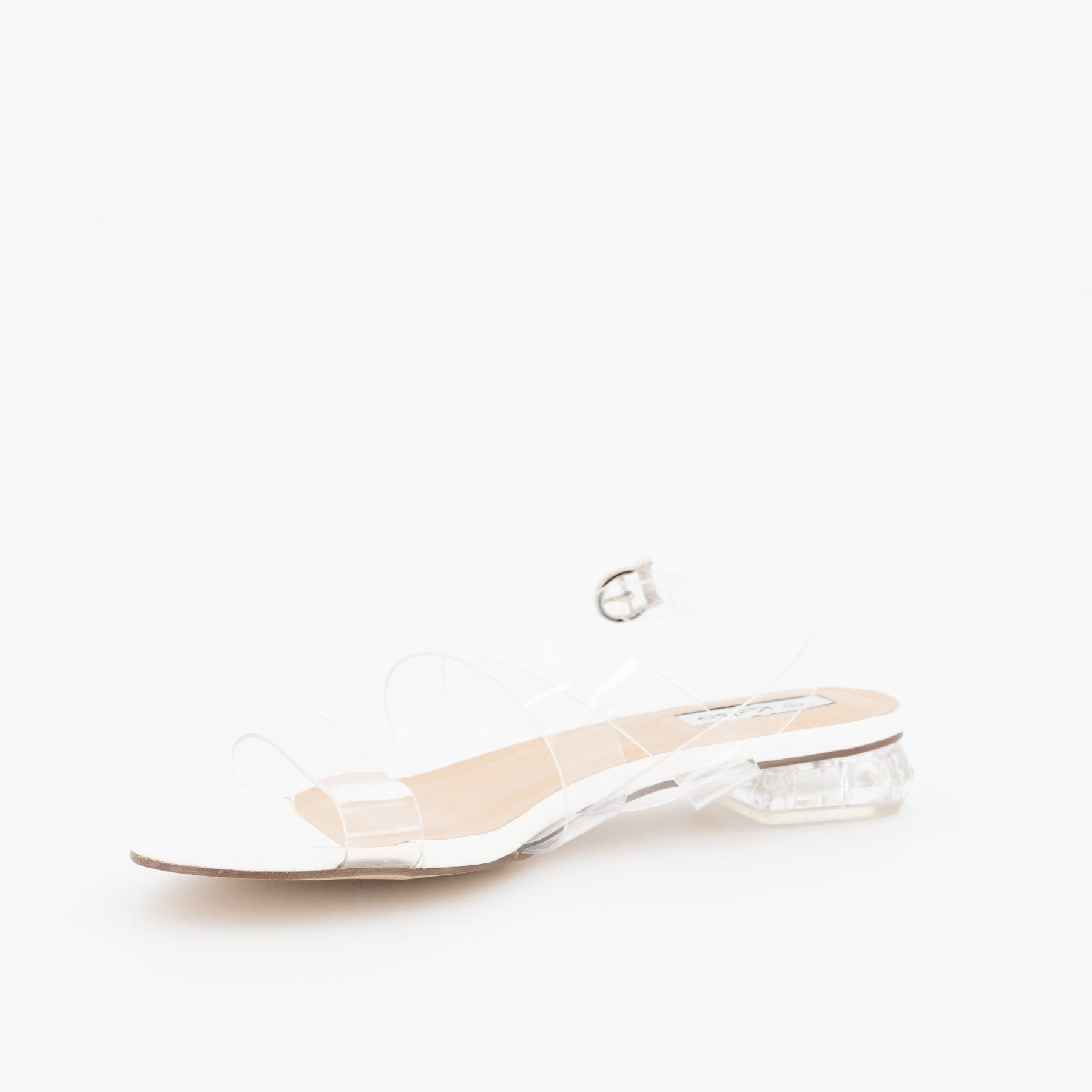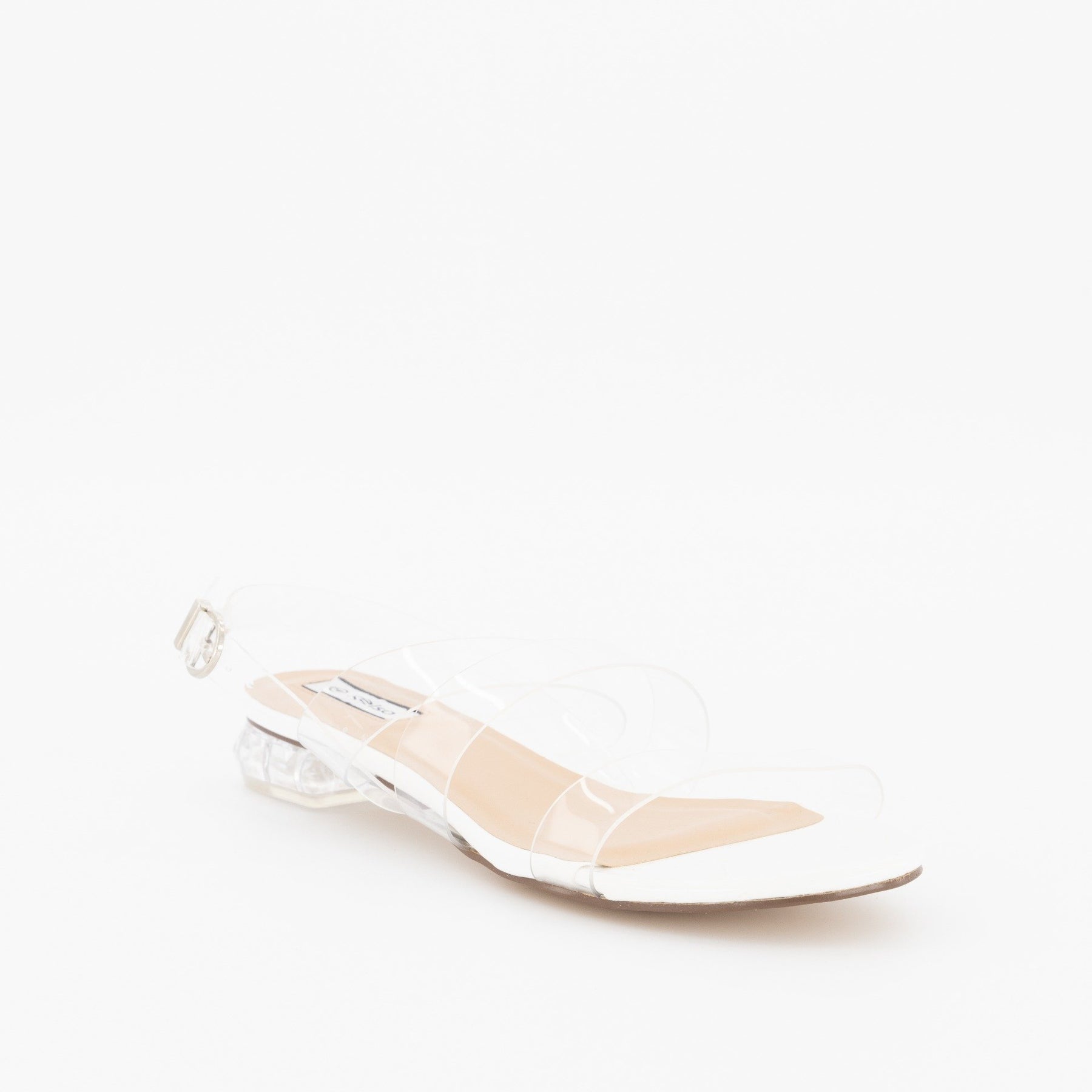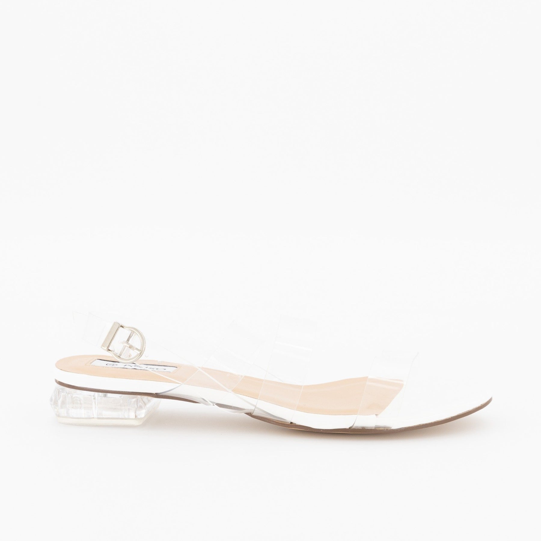 Ladies Low Perspex Heel With Vinyl Upper Strap - Clear