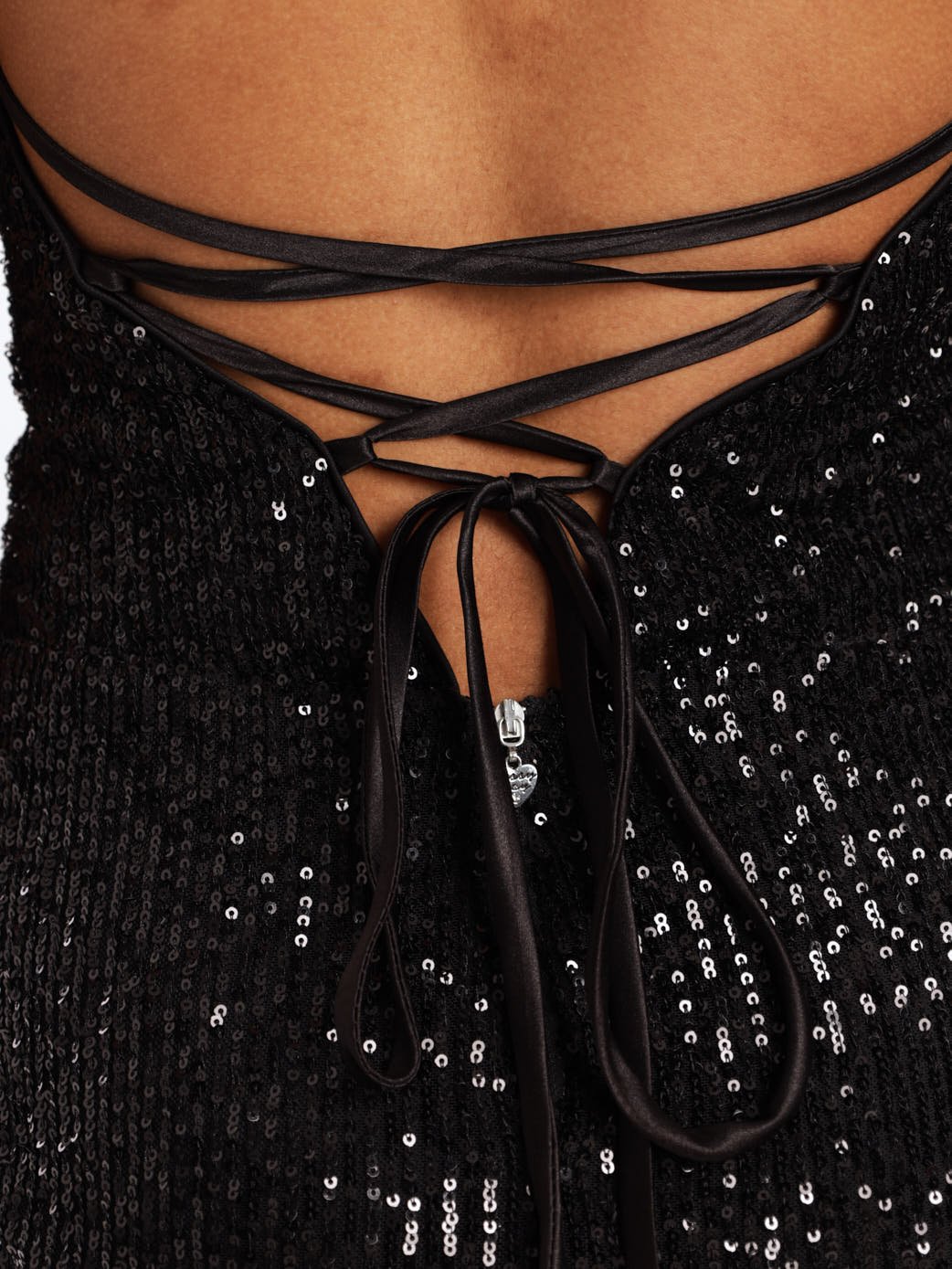 Ladies Maxi Multi-Strap Sequin Dress - Black