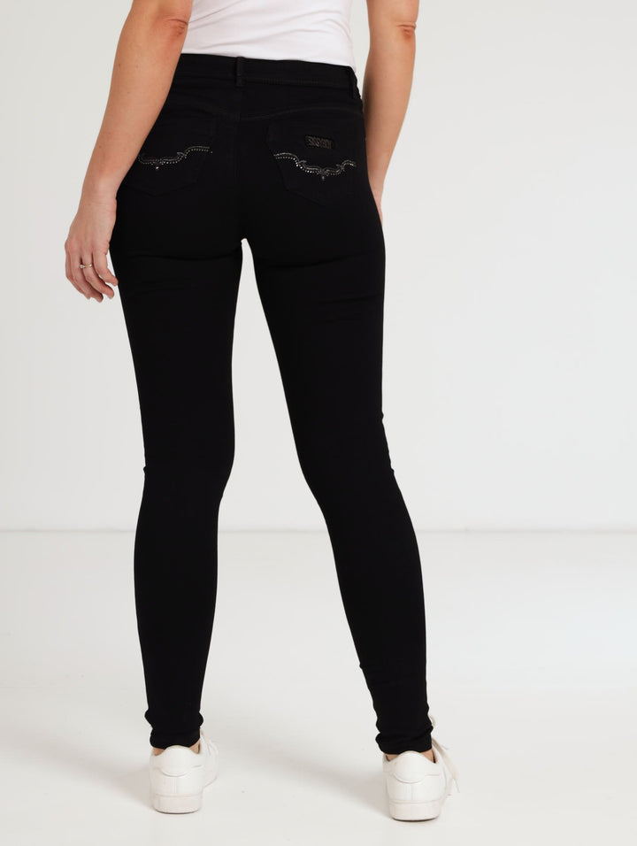 Elevate your style with our Ladies Mischa Axel Black Skinny Denim Jean - in sleek black, perfect for any occasion. The slim fit offers a flattering silhouette while the good quality ensures long-lasting wear. Upgrade your wardrobe with this must-have piece.