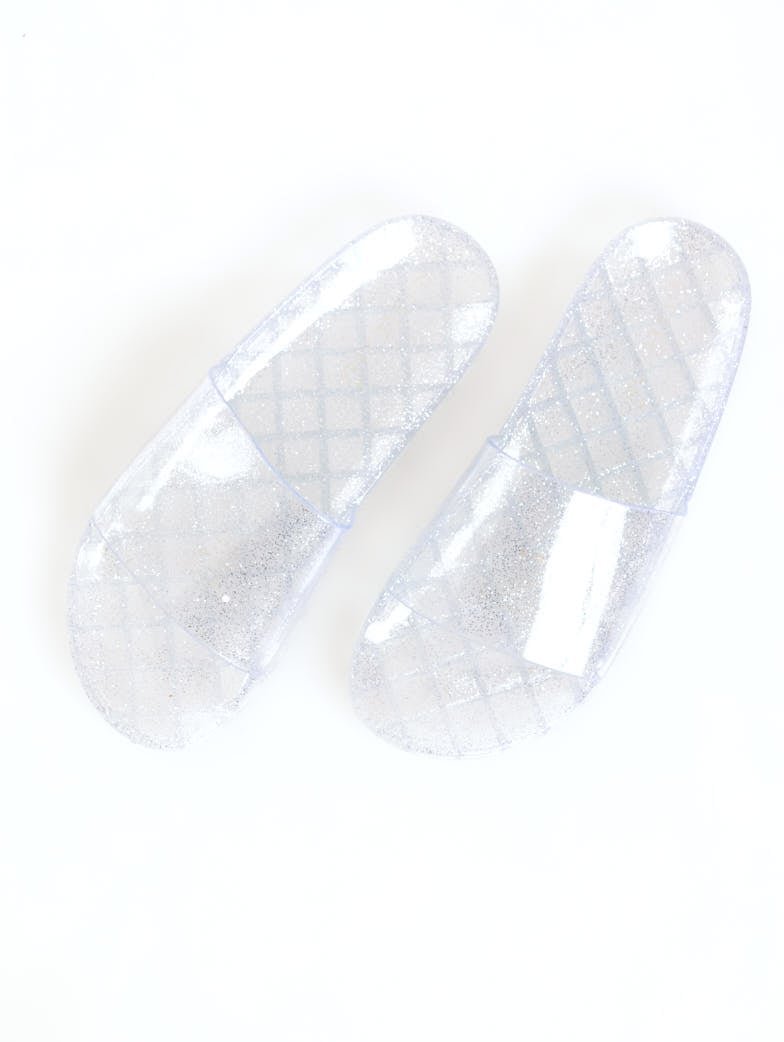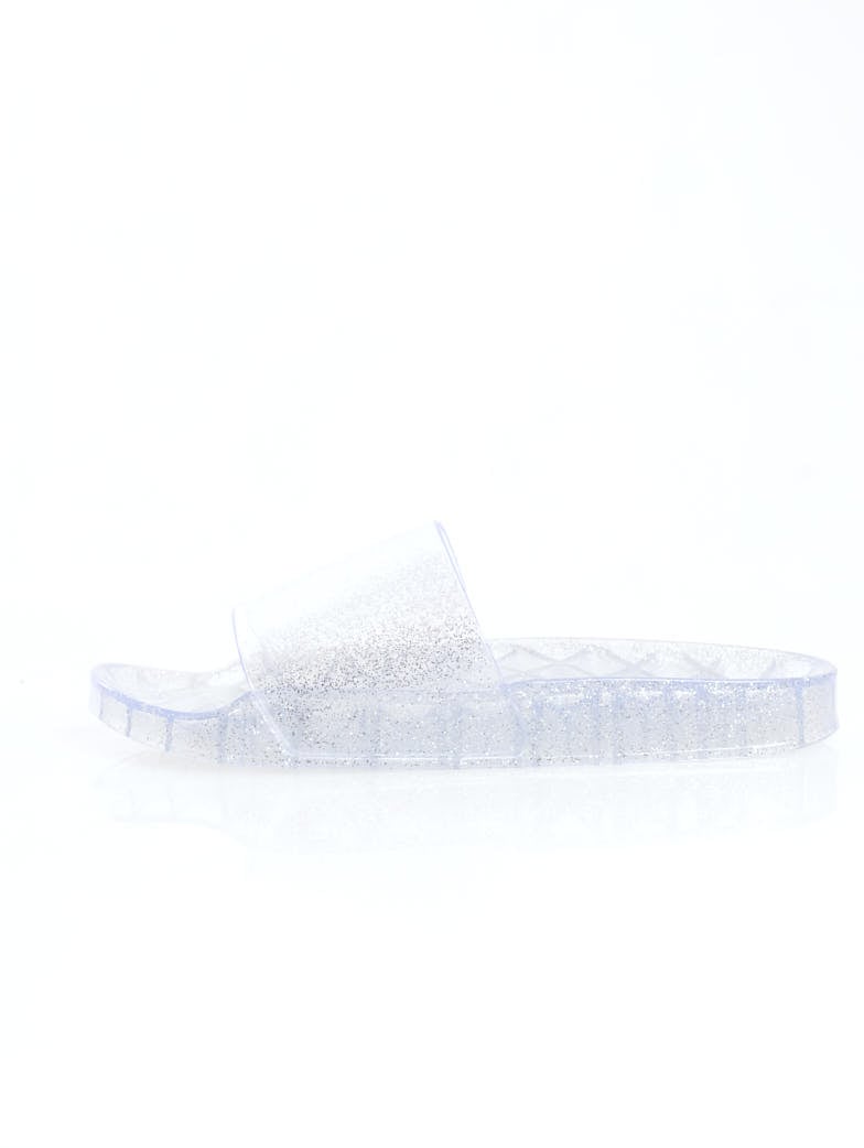Ladies Plain Glitter Jelly Slide Sandal - Clear