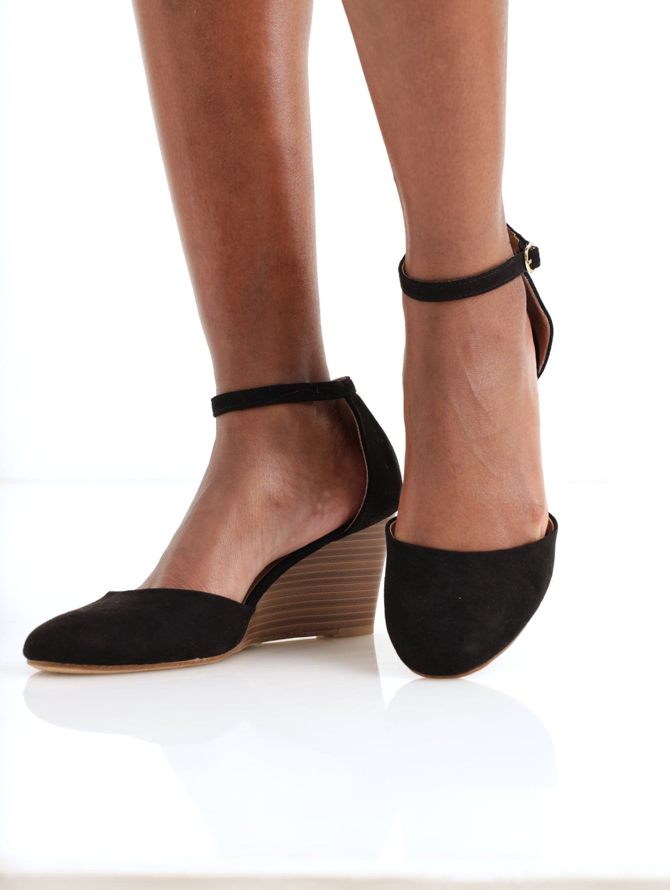 Ladies Round Toe Dorsay Wedge Heel - Black