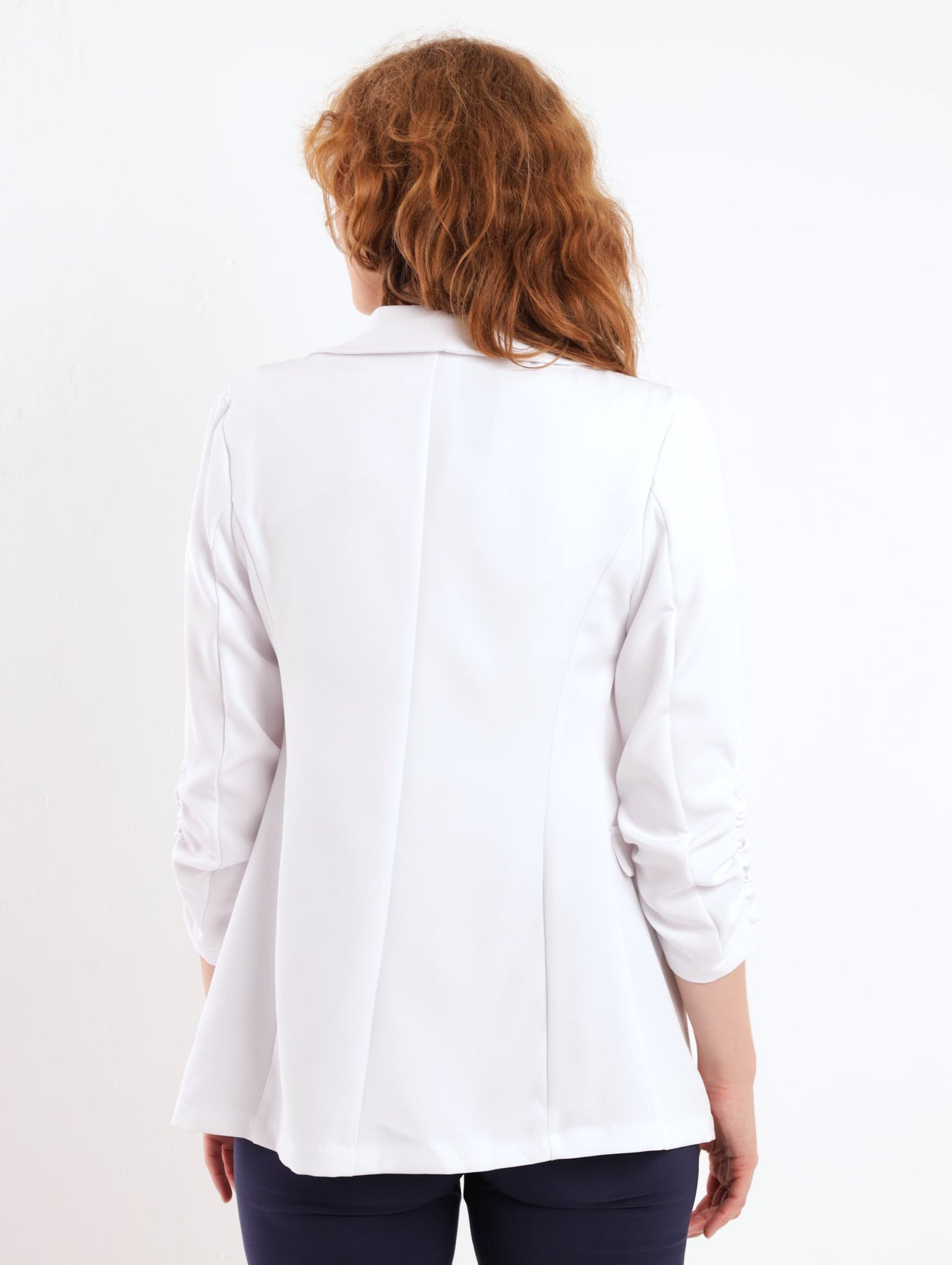 Ladies Ruched Sleeve Half-Lined Blazer - White