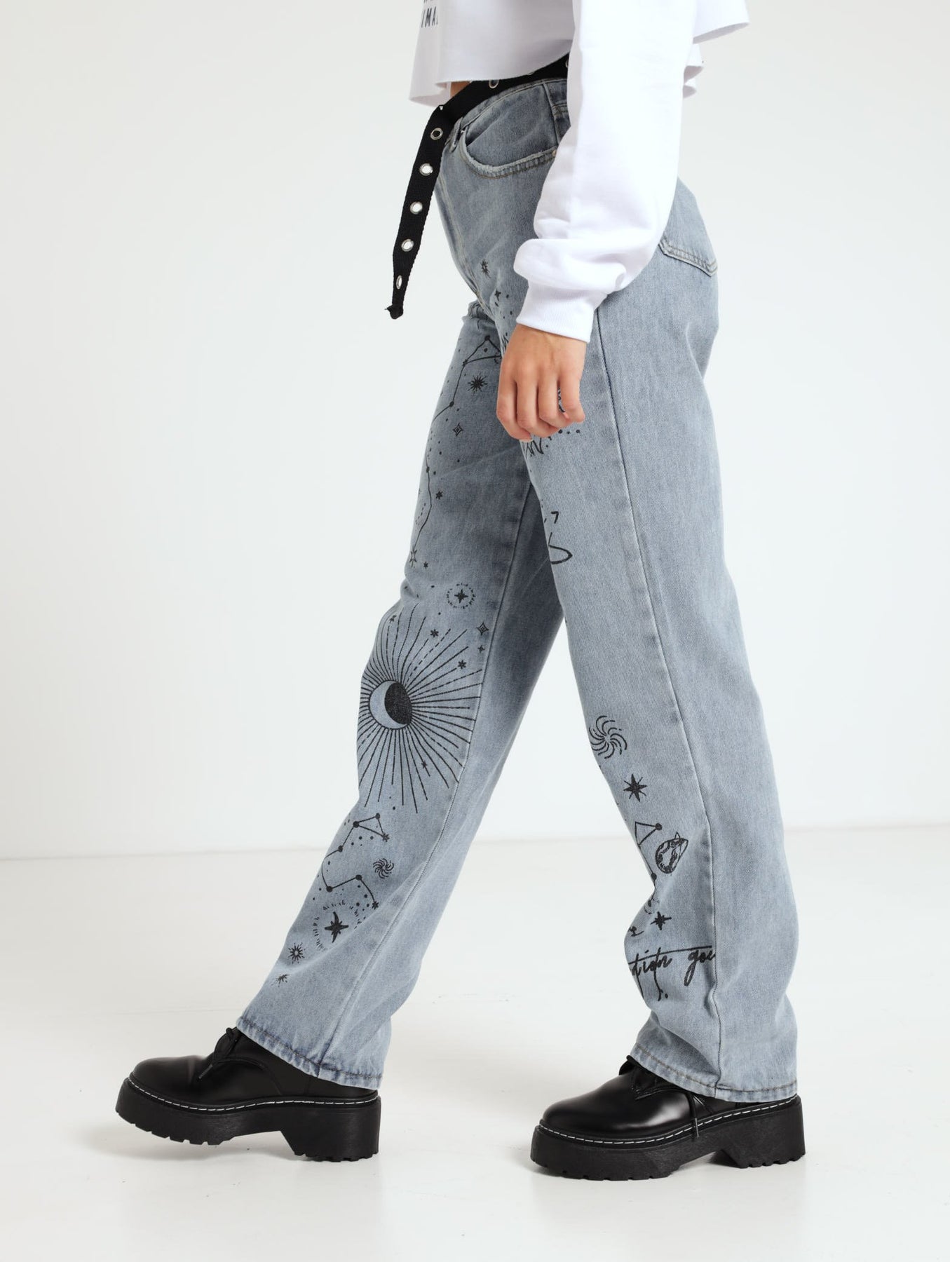 Ladies Salty Light Wash Celestial Belted Straightleg Denim Jean