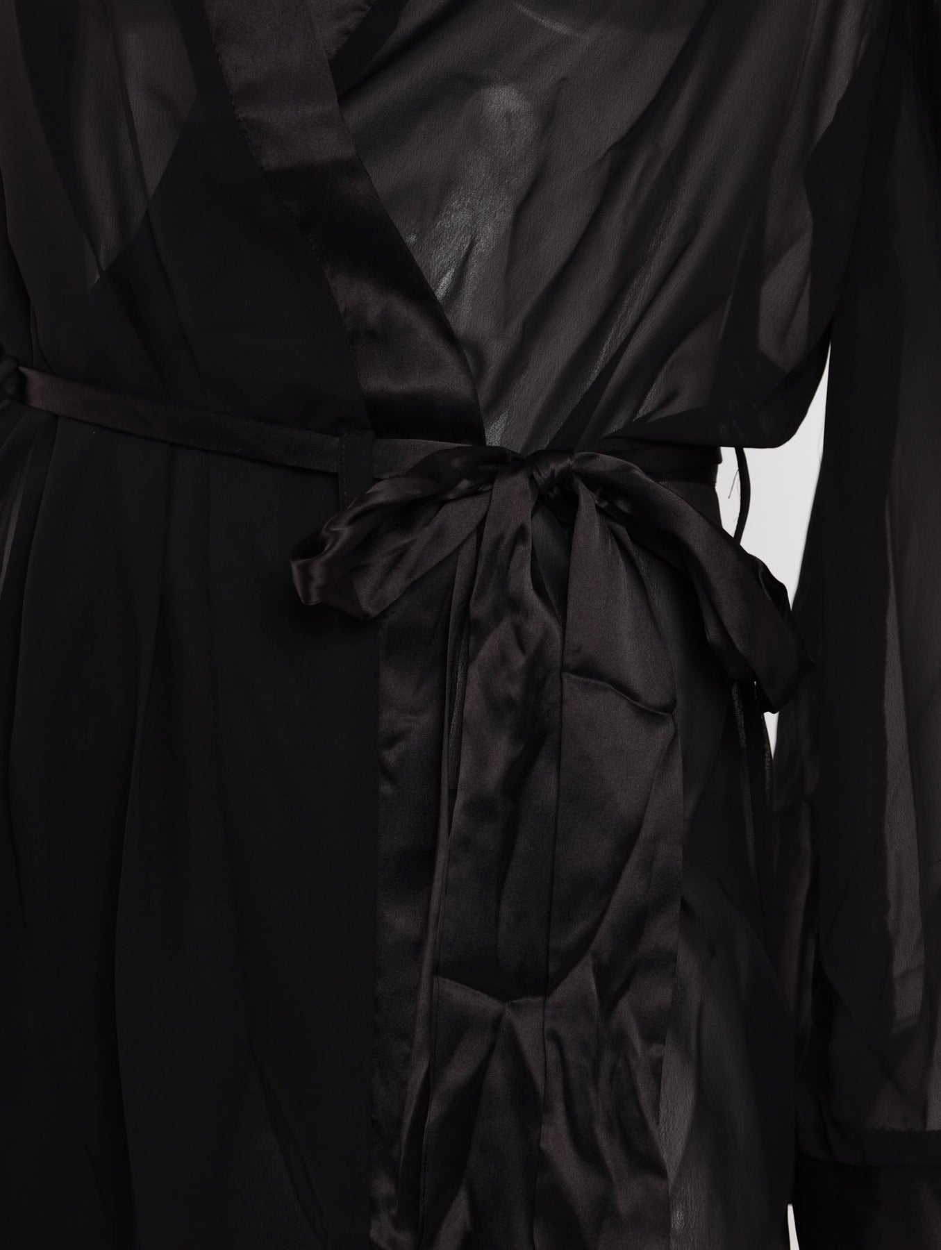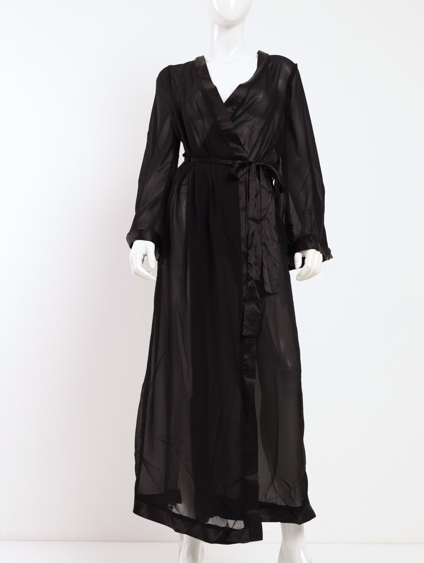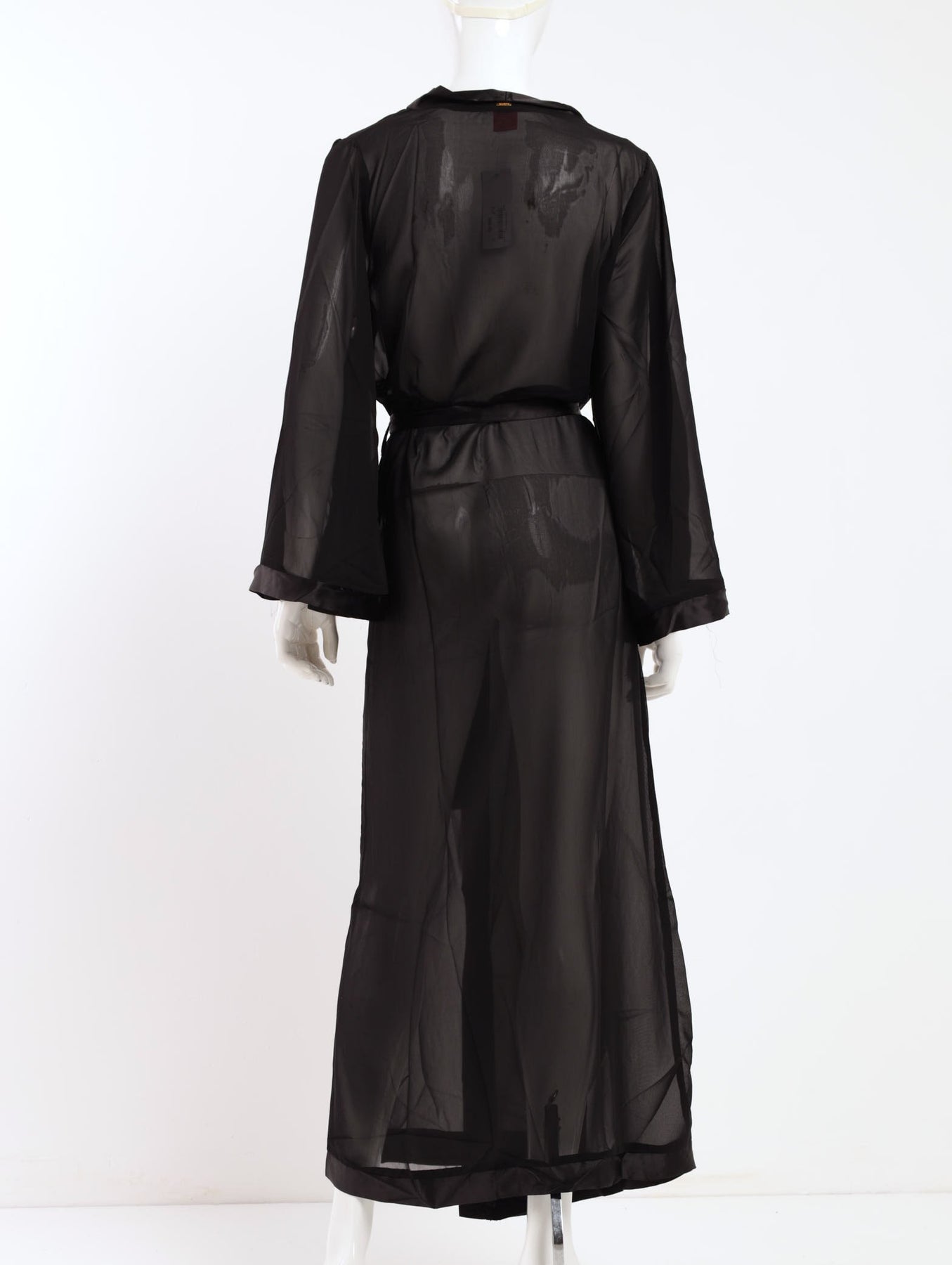 Ladies Sheer Kimono Sleeve Long Robe - Black