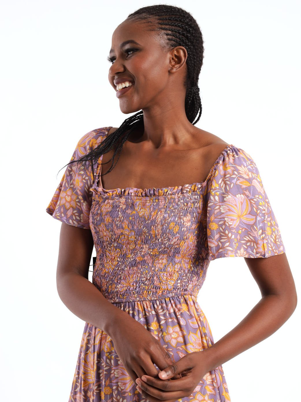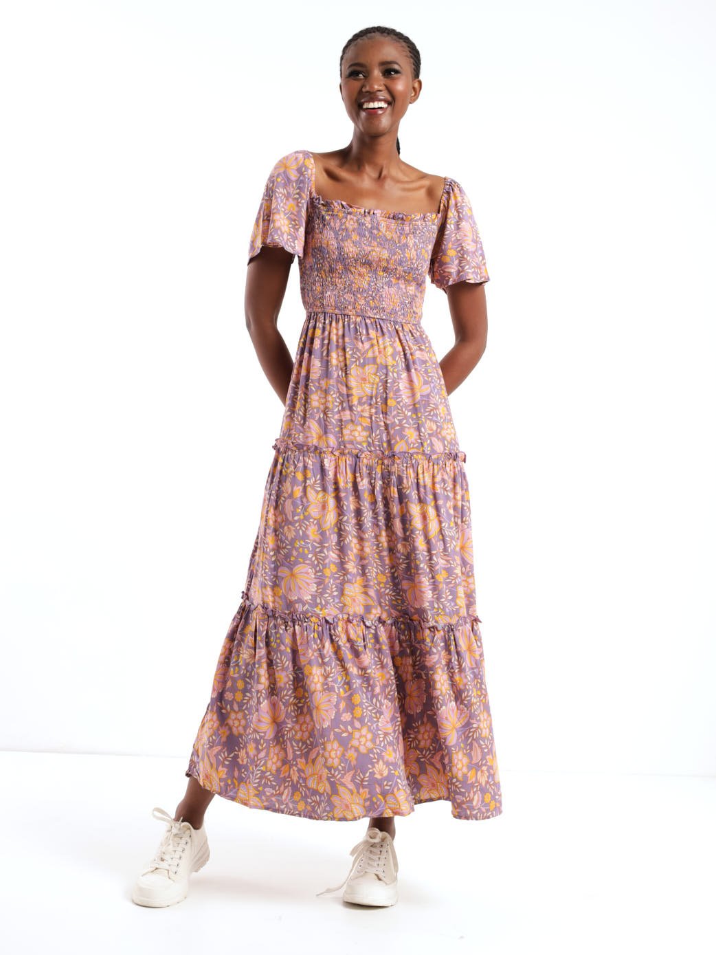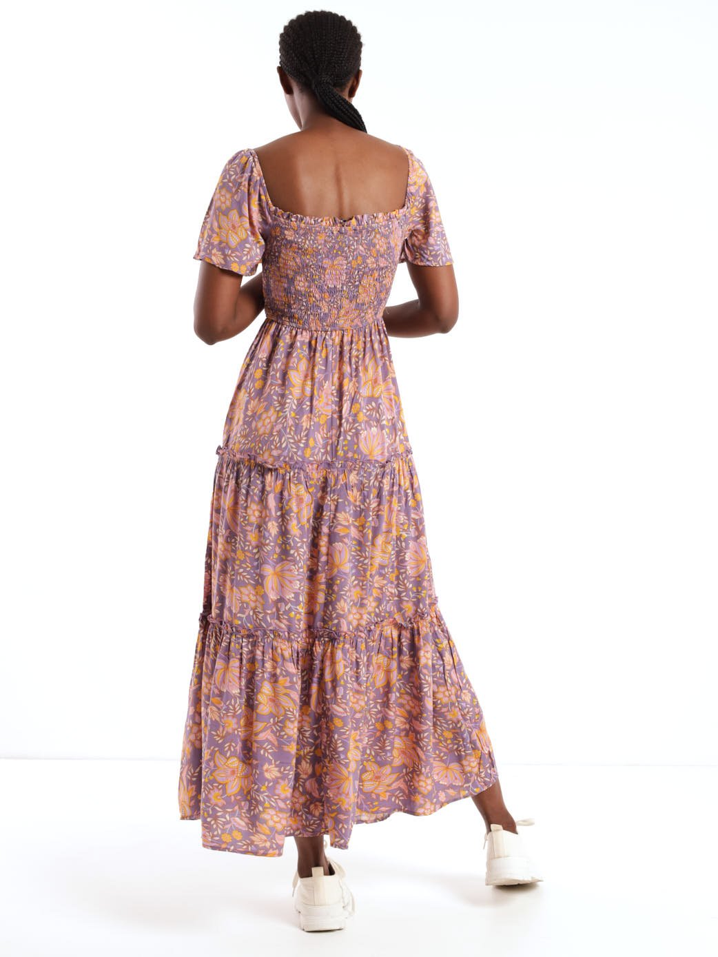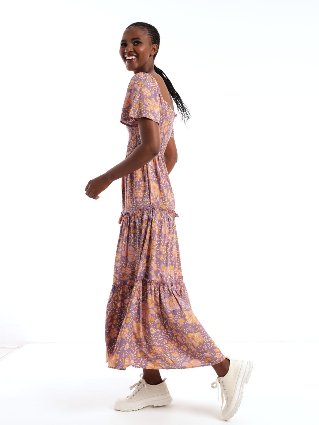 Ladies Short Sleeve Tiered Paisley Maxi Dress