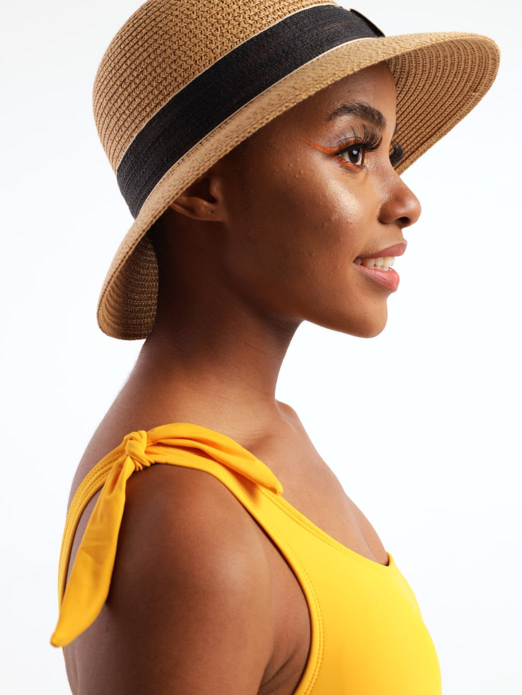 Ladies Side Cut Out One Piece Swimwear - Yellow