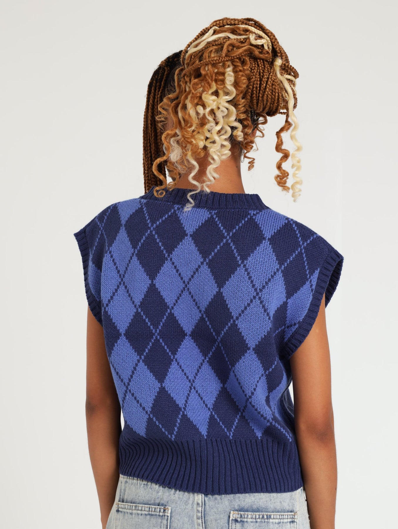 Ladies Sleeveless Argyl Pullover - Navy