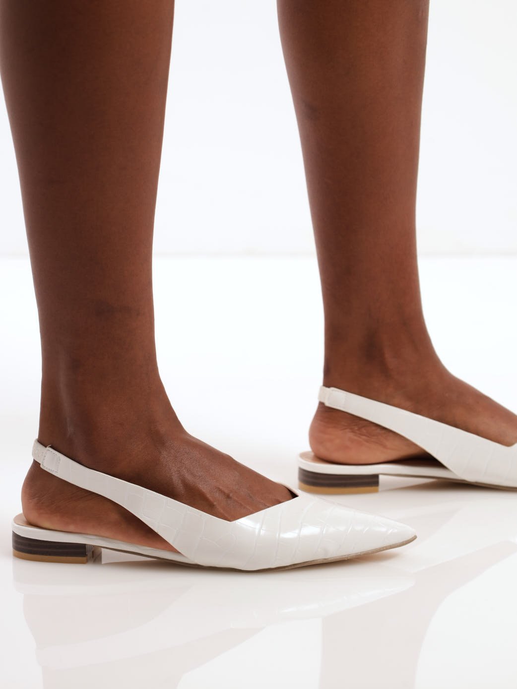 Ladies Slingback Pointy Shoe With V-Cut Vamp - White