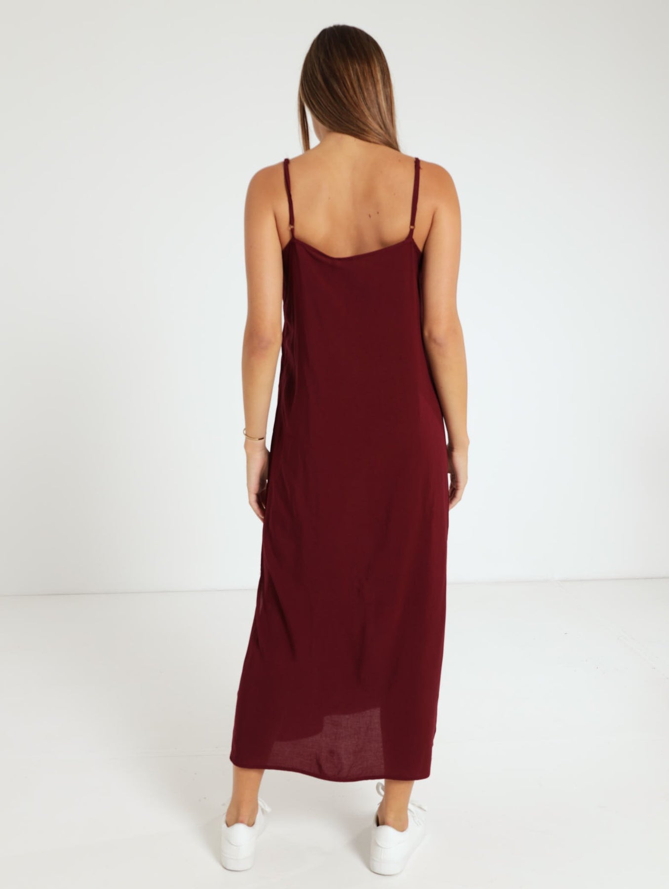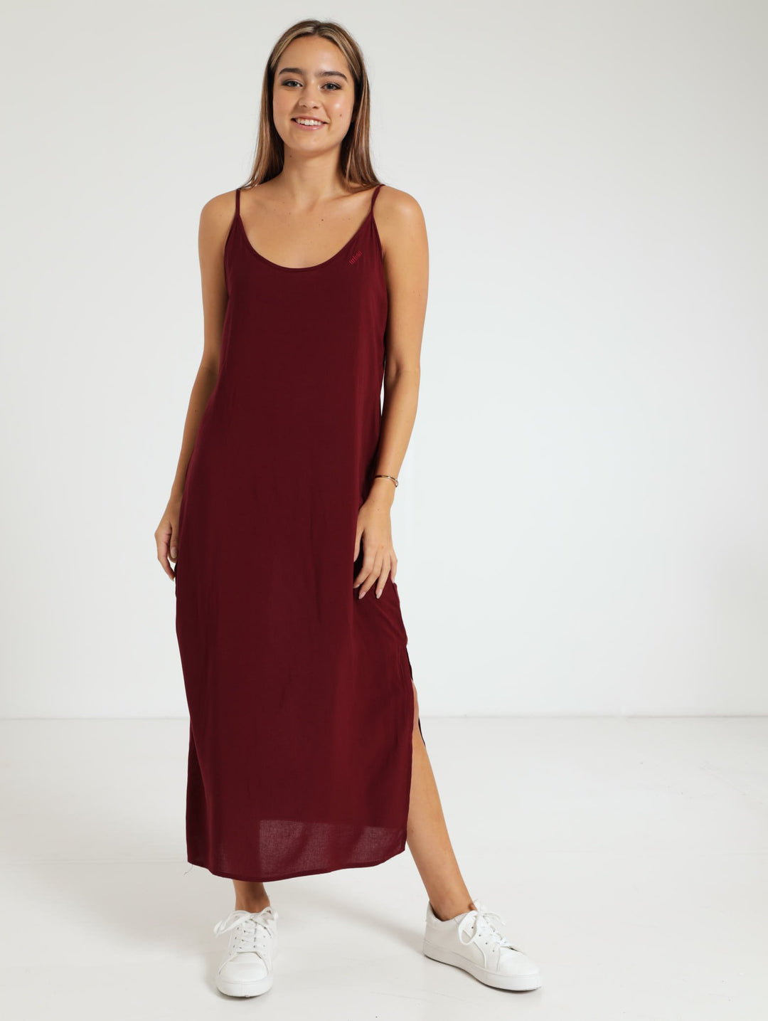 Ladies Slip Dress With 3D Embrodiery - Burgundy