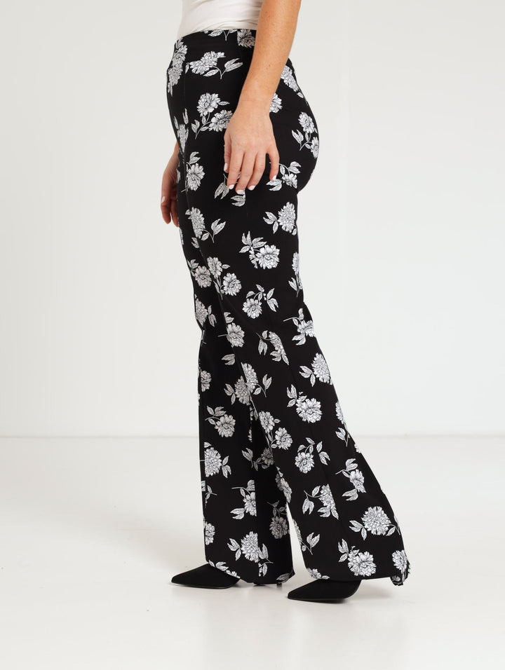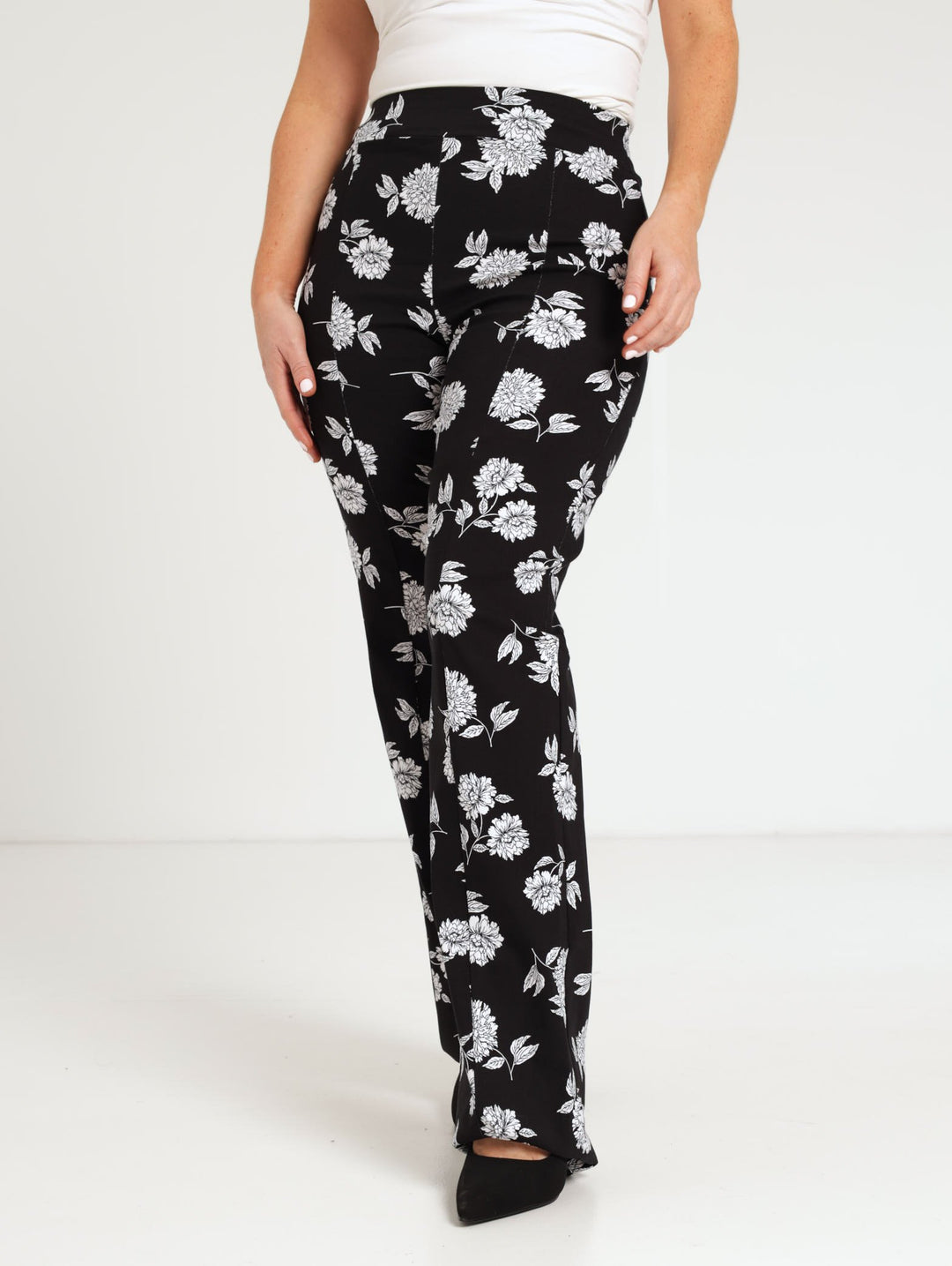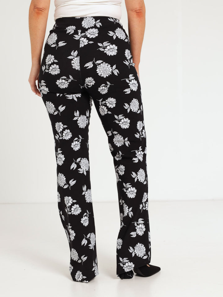 Ladies Straight Leg Printed Bengaline Pant - Black