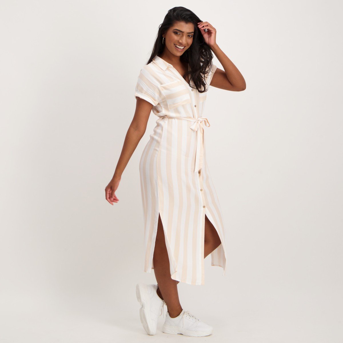 Features: Notch lapel collar, two front pockets, belt loops with removable belt, side slits and button down design.
