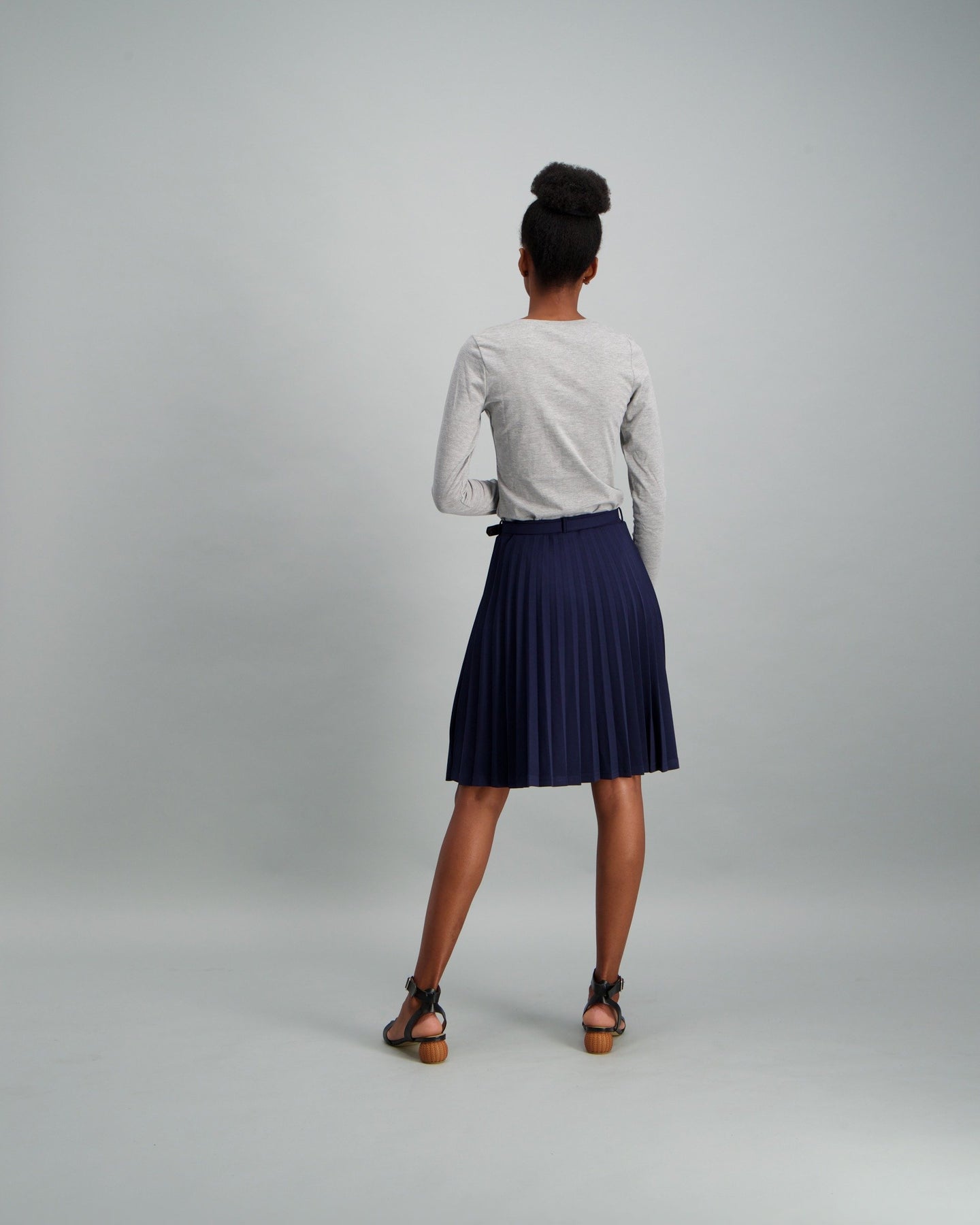Feminine and flirty. Our mini pleated skirt is a versatile piece that will take you from weekends to the office all year long. Pair with a white pullover and sneakers or a white and blue stripe shirt and nude heels. Features: Sunray pleats, belt loops, removable belt and a mini length design.