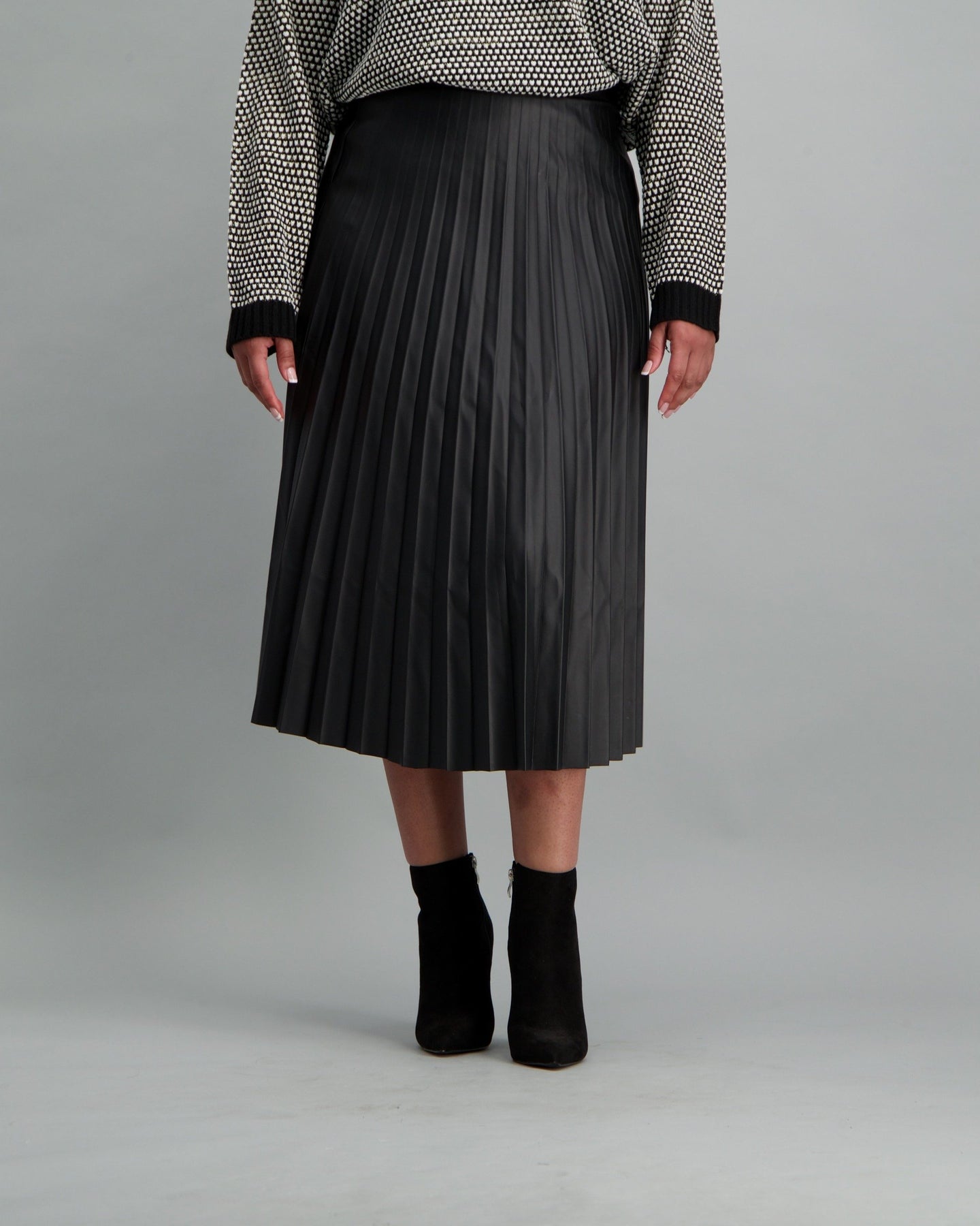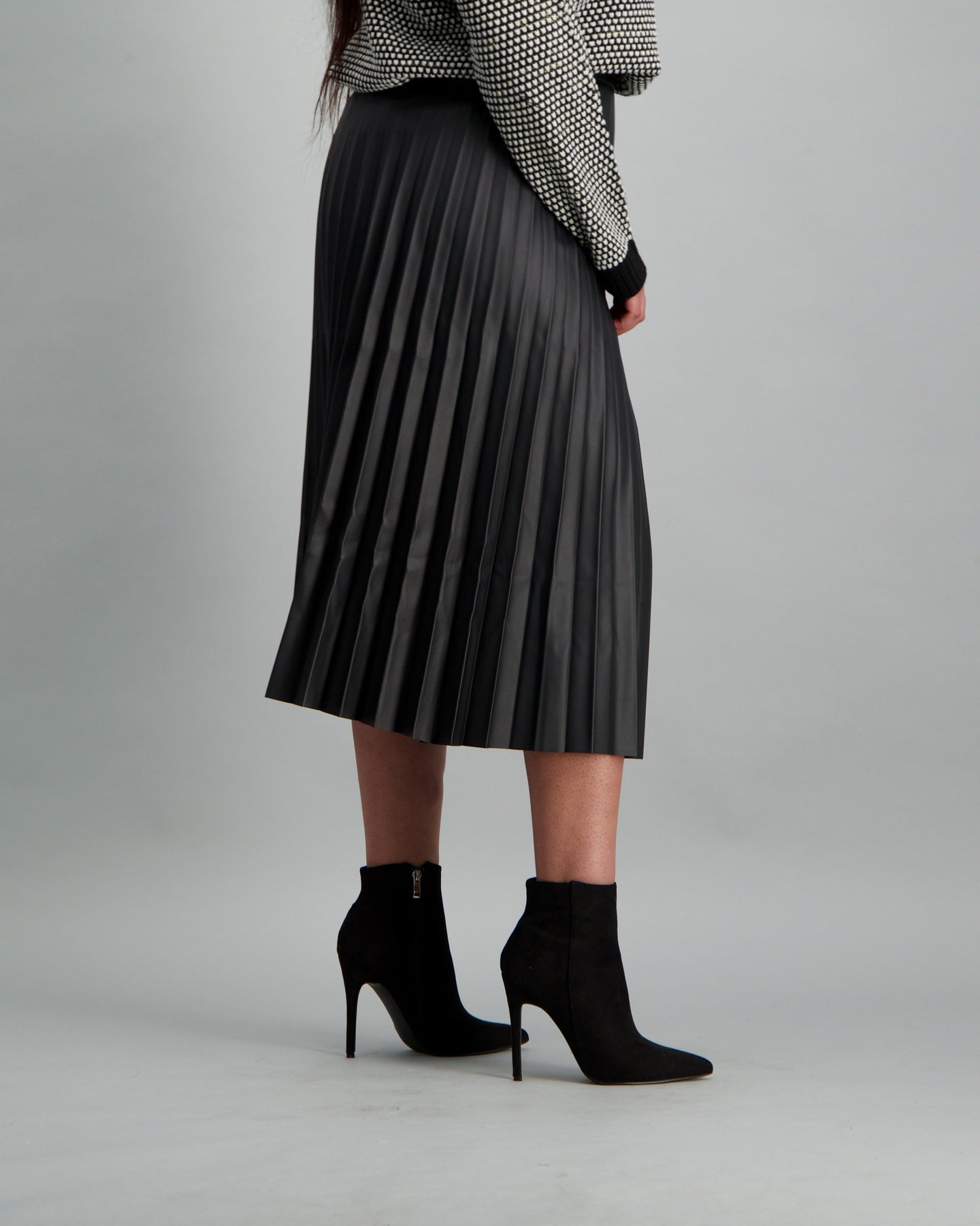 Features: Sunray pleated skirt, a side zip and waistband design.
