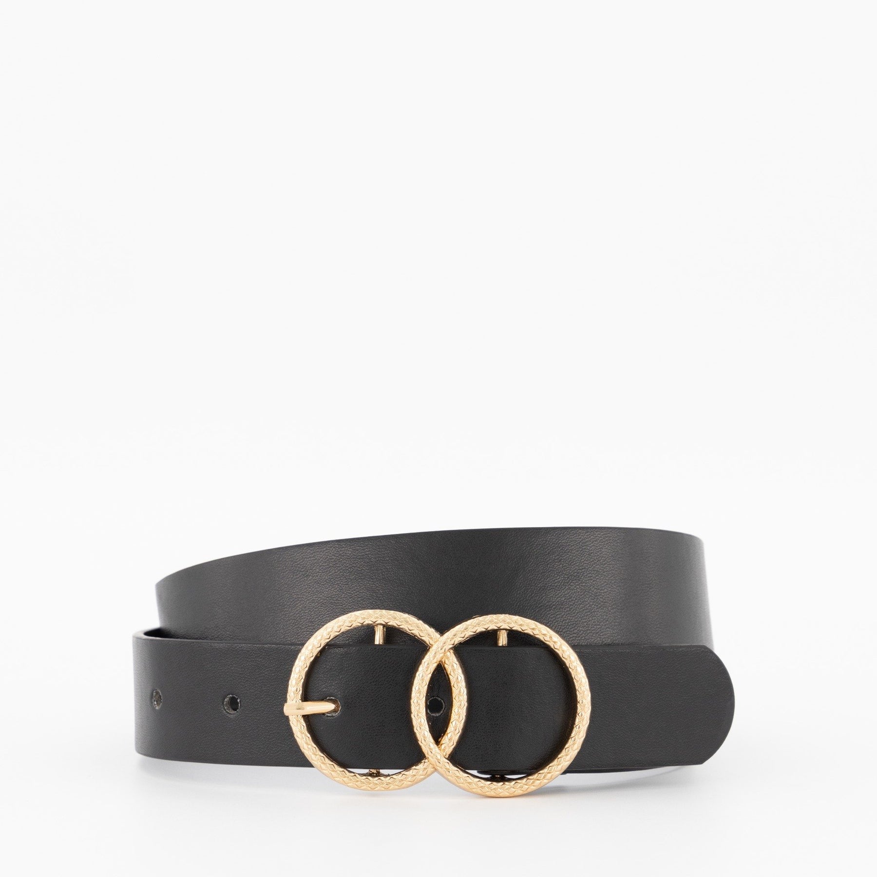 Ladies-Round Textured Buckle Fashion Belt - Black
