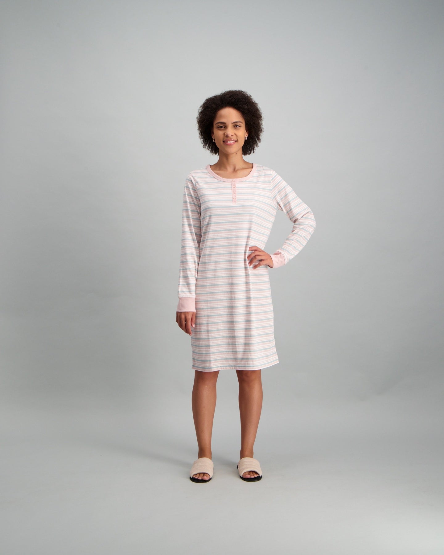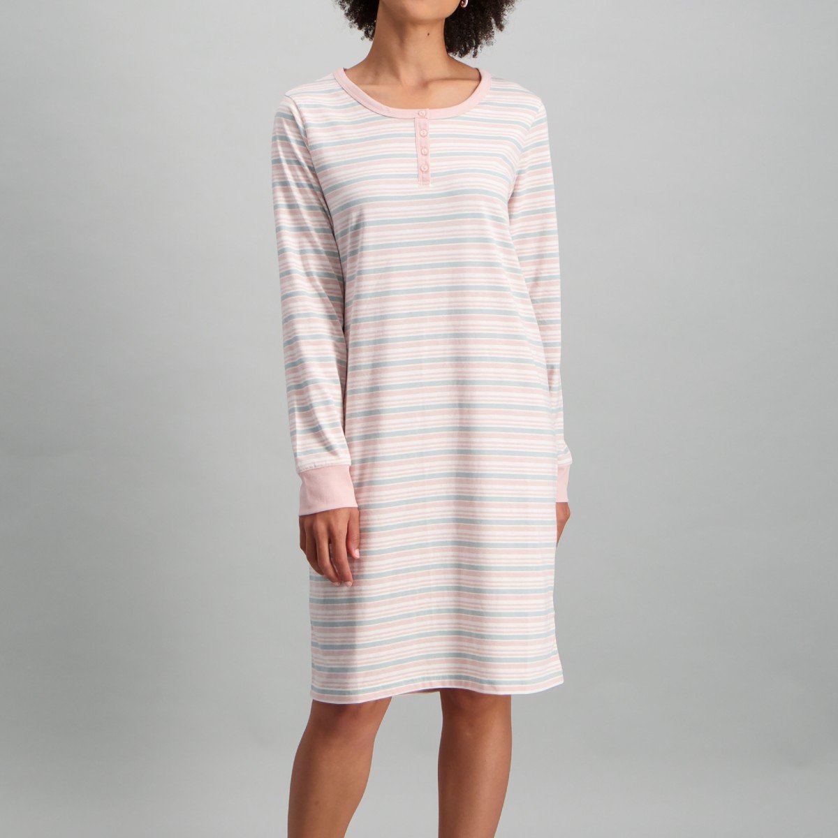 Features: Round neckline, button down front and cuffed long sleeve trims.
