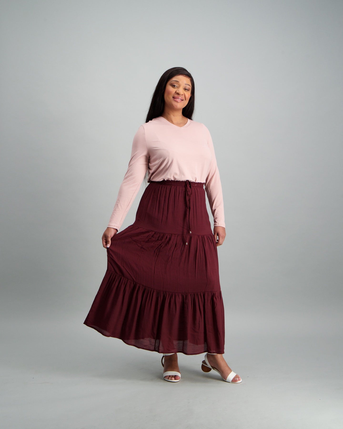 Features: Elasticated drawstring waistband and two tiered lined skirt.