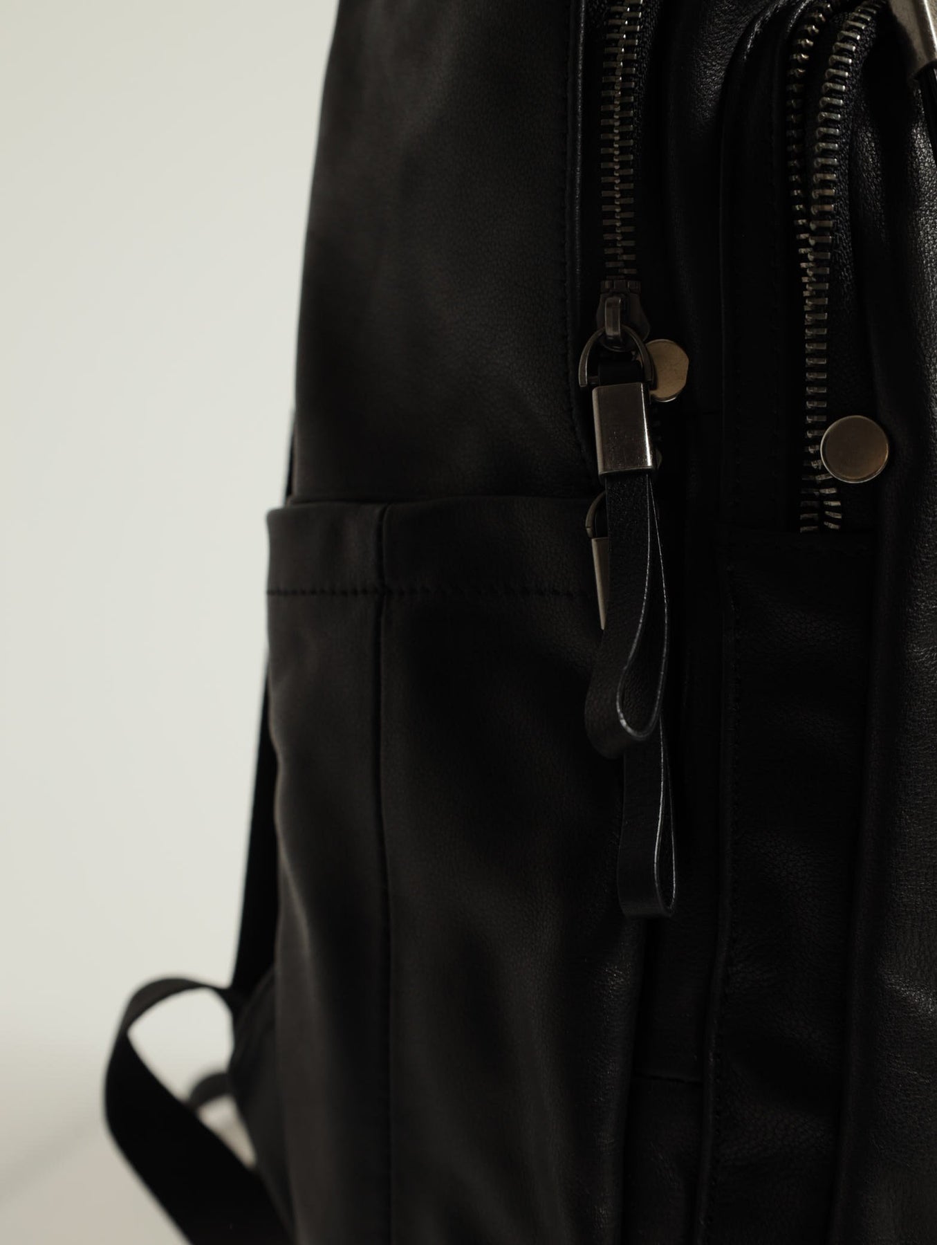 Leather Zipped Backpack - Black