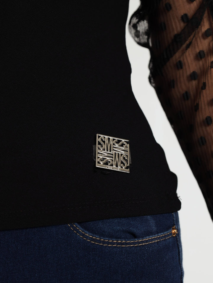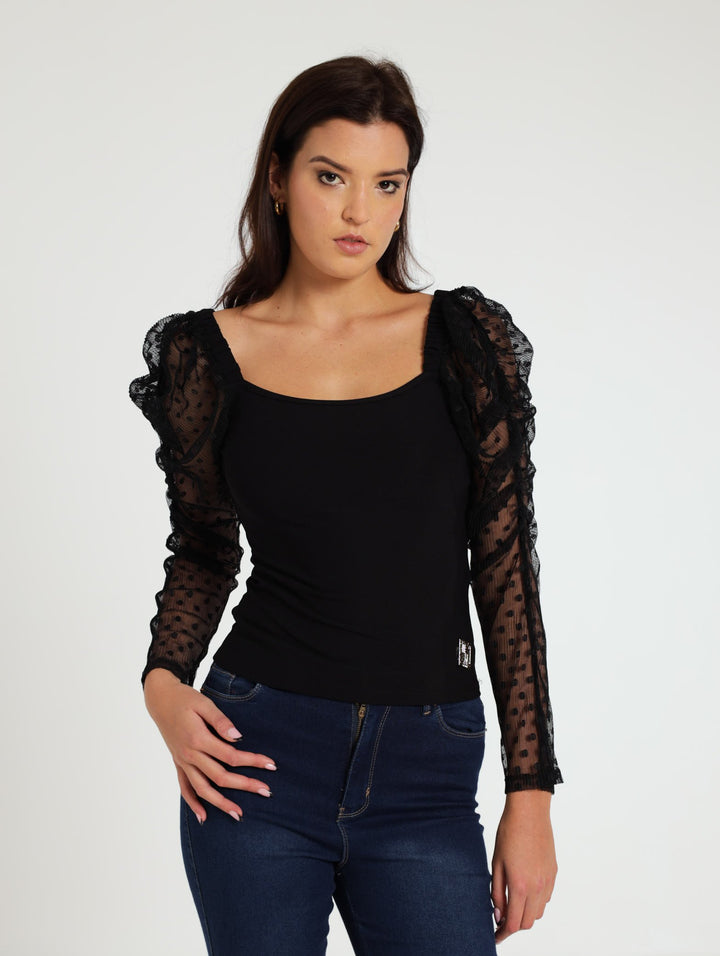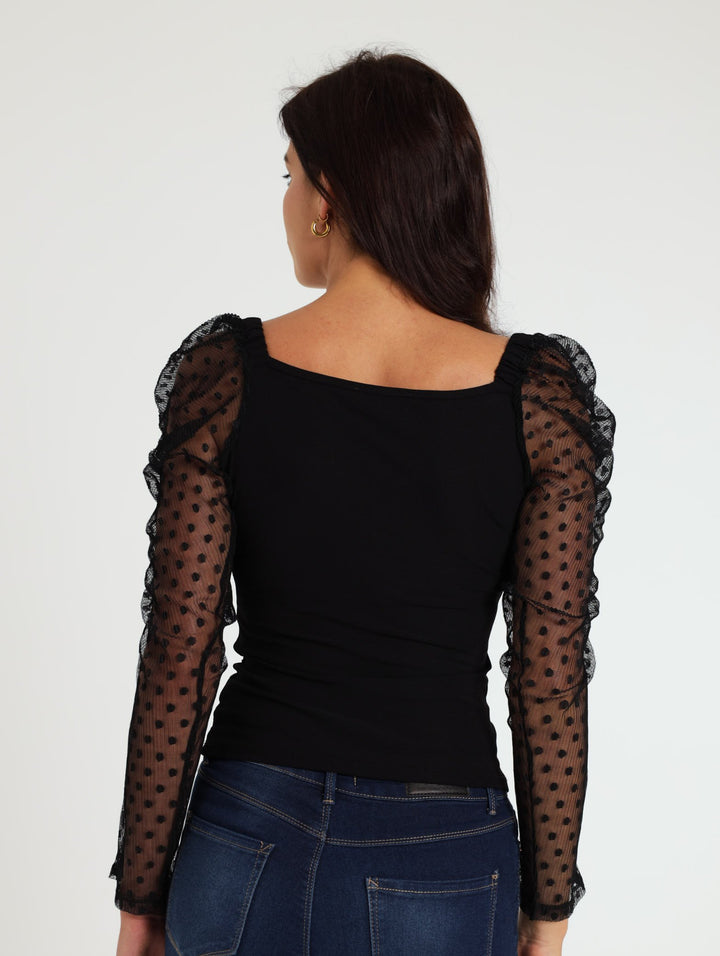 Liby Dobby Puff Sleeve Top - Black