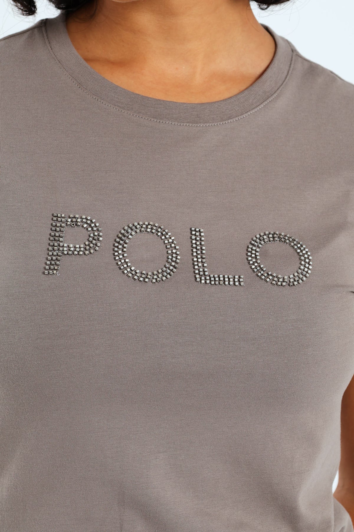 Lily Short Sleeve Beaded T-Shirt - Grey
