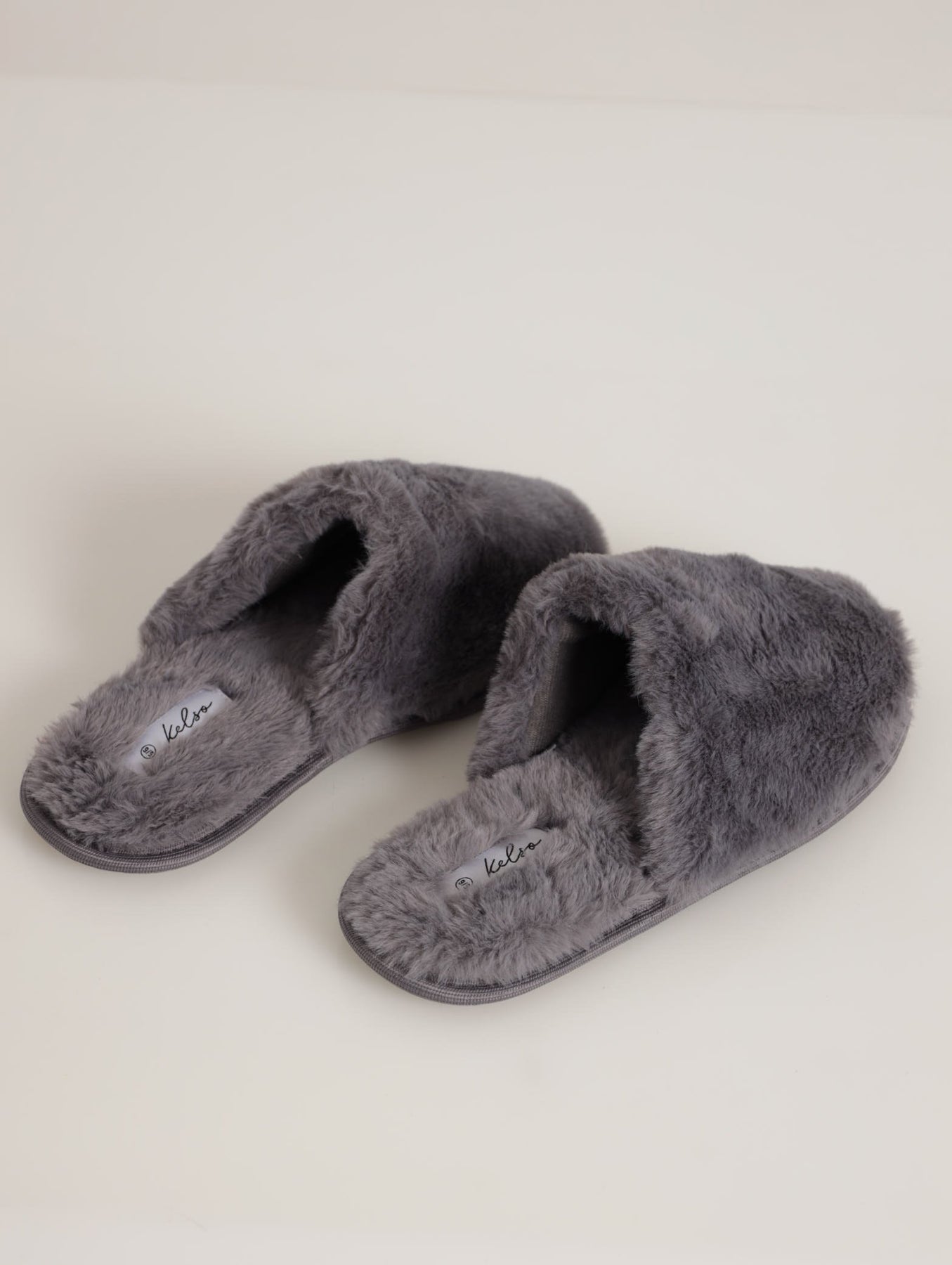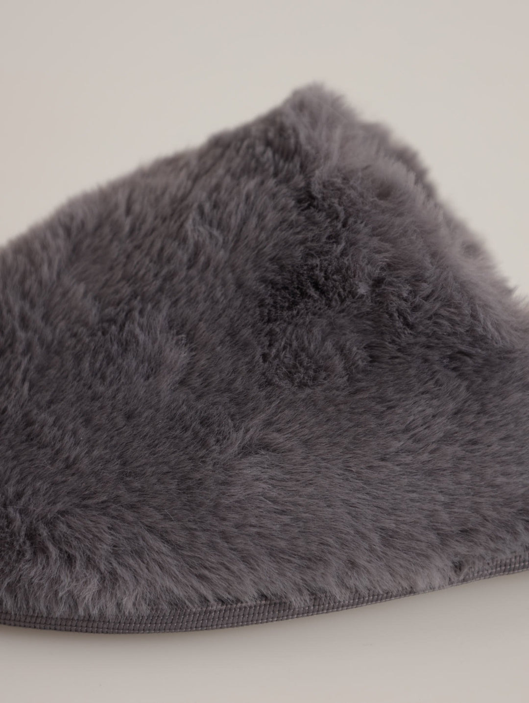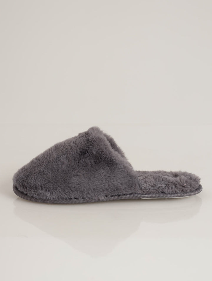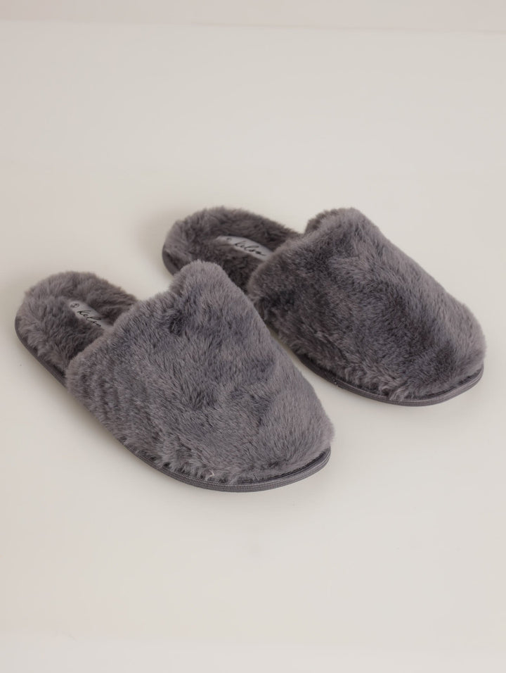 Long Fur Closed Toe Slipper - Grey