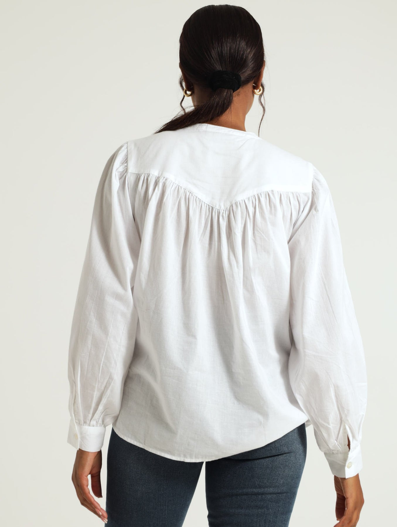 Long Sleeve Boho Button Through Blouse - White