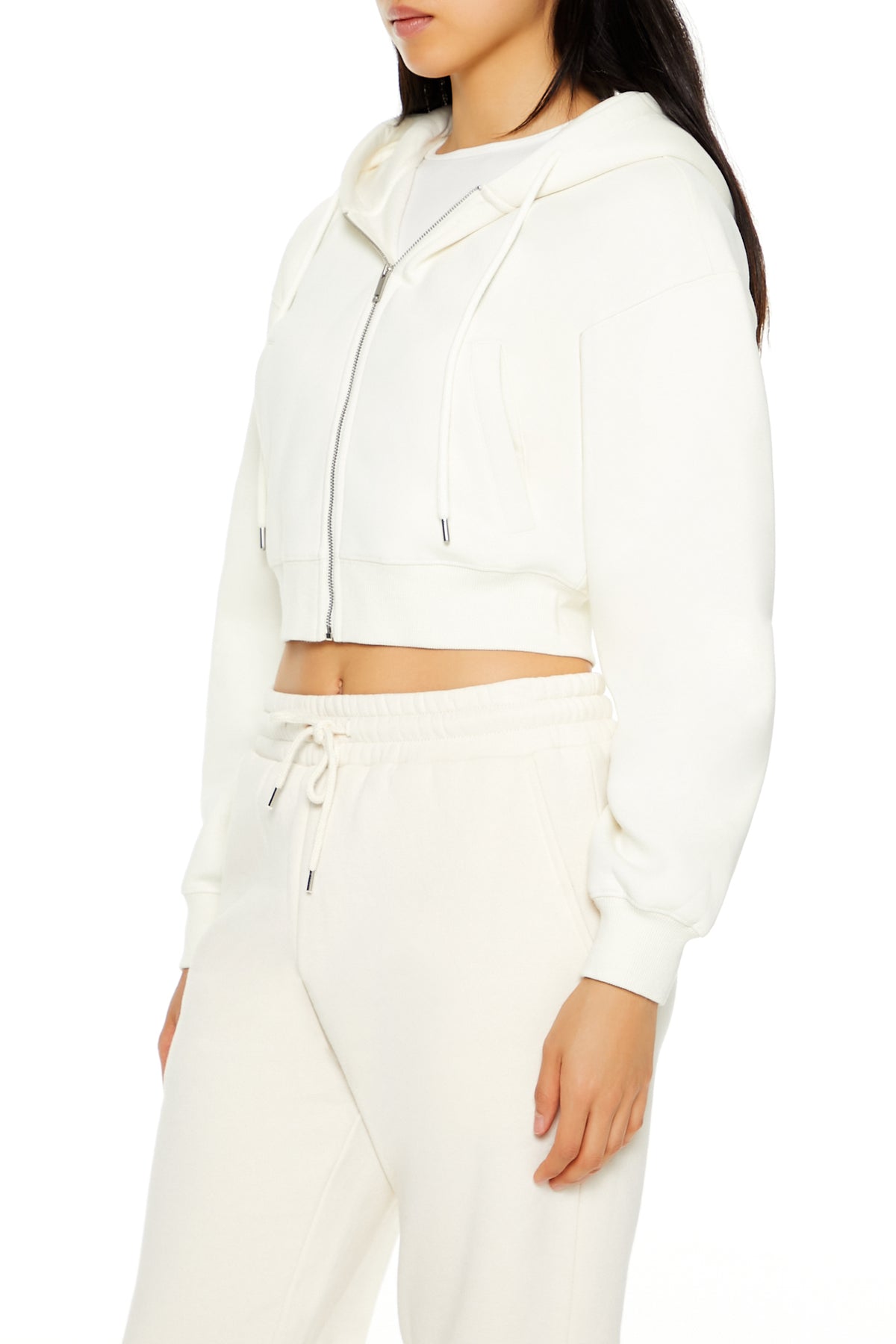 Long Sleeve Cropped Athletic Jacket - Cream