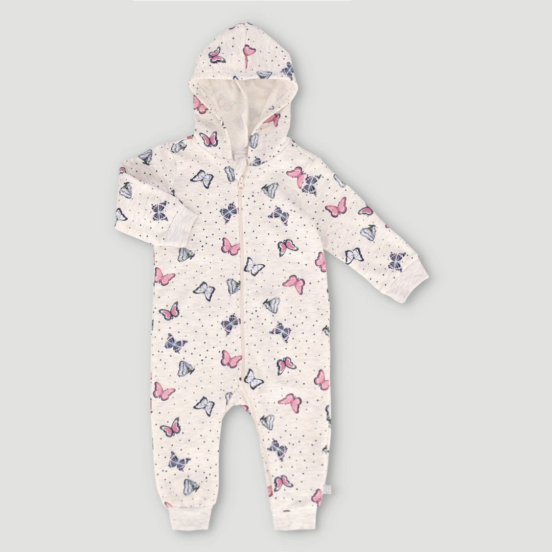 Long Sleeve Hooded Fleece Babygrow - Oatmeal
