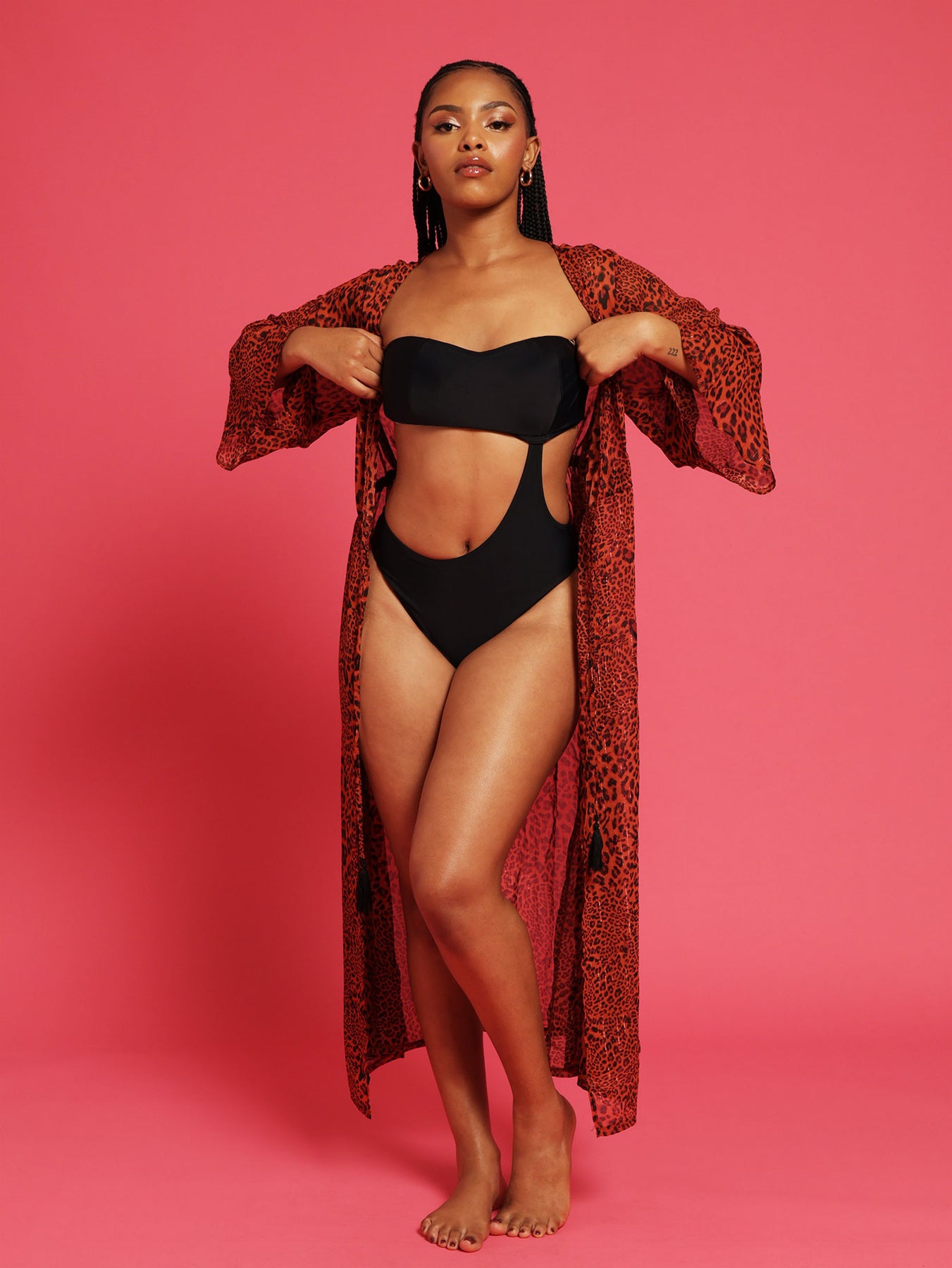 Long Sleeve Lurex Leopard Print Kimono - Brown
