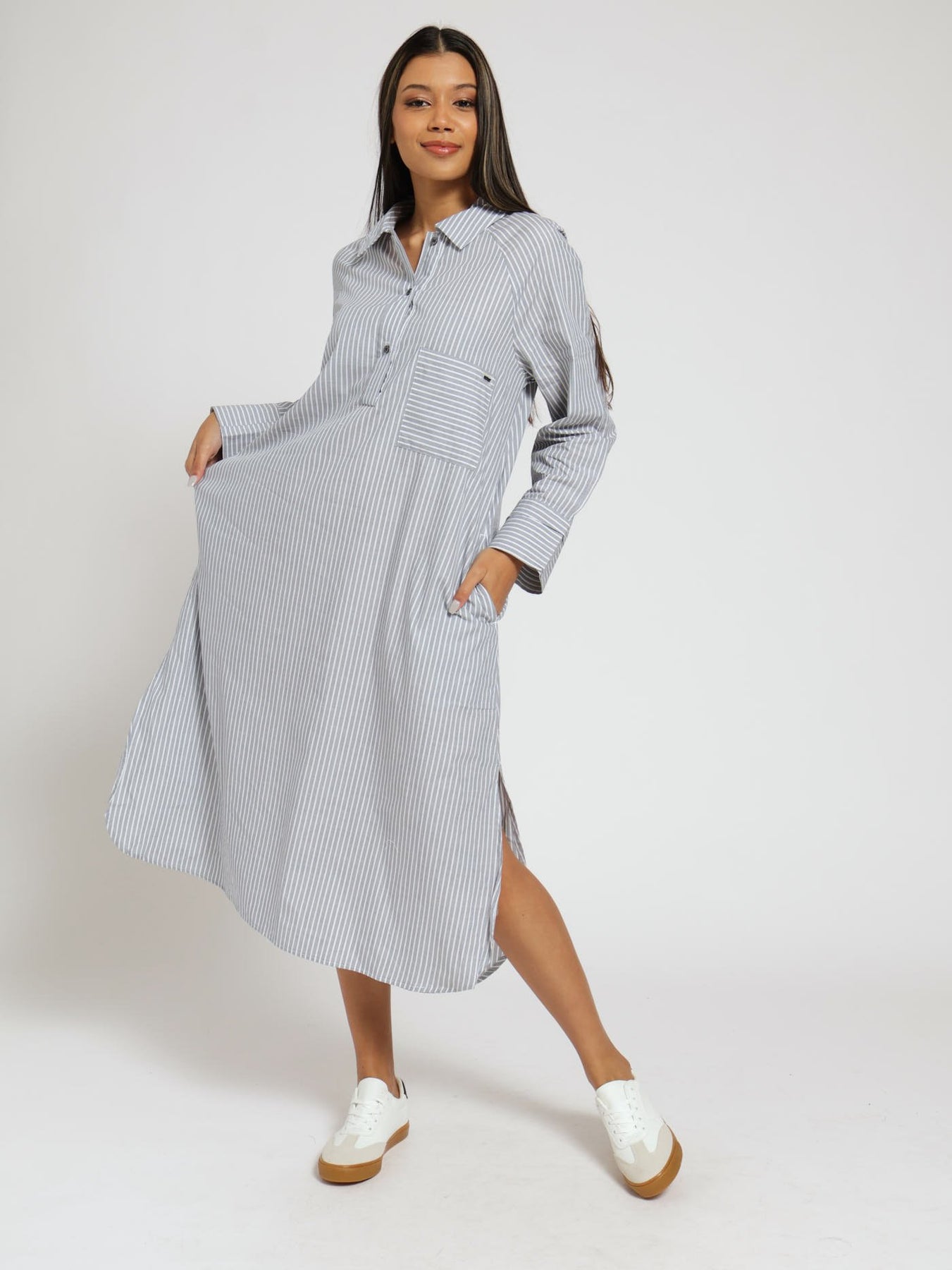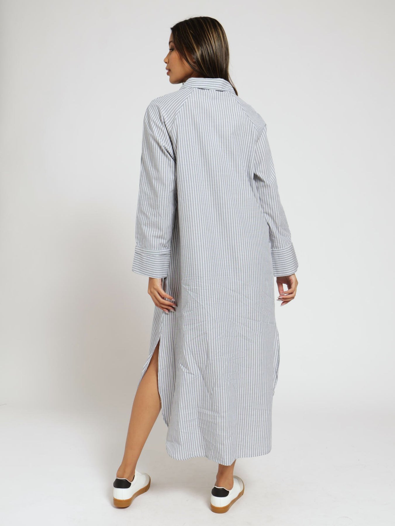 Long Sleeve Maxi Stripe Shirt Dress - Navy