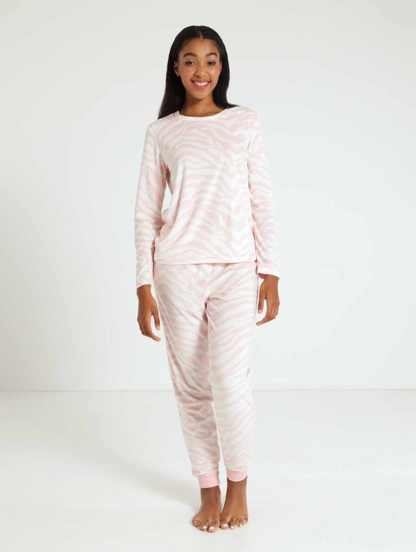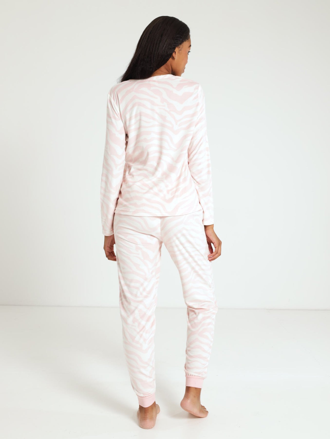 Long Sleeve Micro Zebra Print Sleepwear Set - Pink