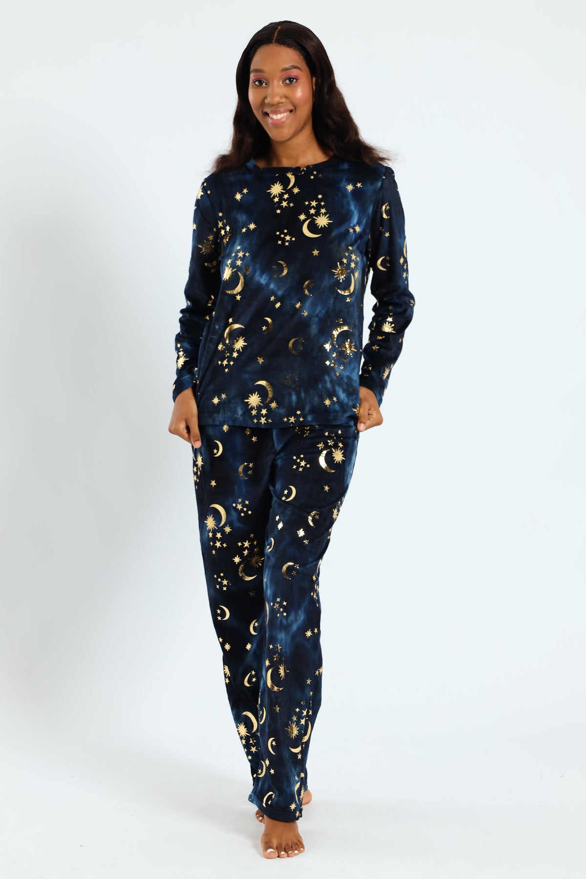Long Sleeve Night Sky Velour Top & Pants Set - Navy
