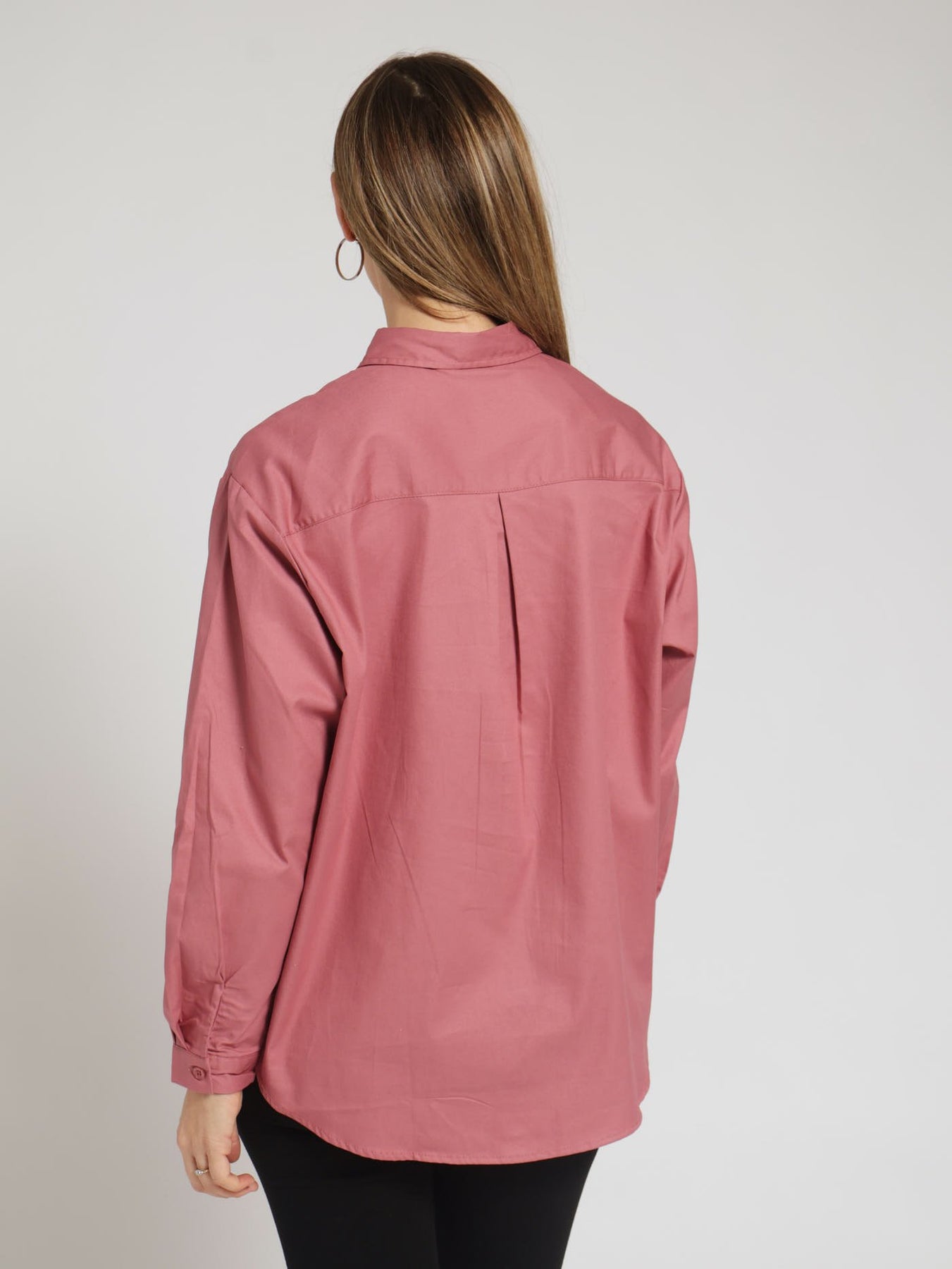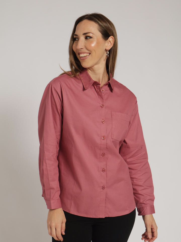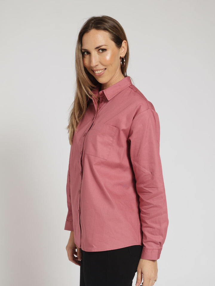 Long Sleeve Oversized 1 Pocket Twill Shirt - Deco Rose