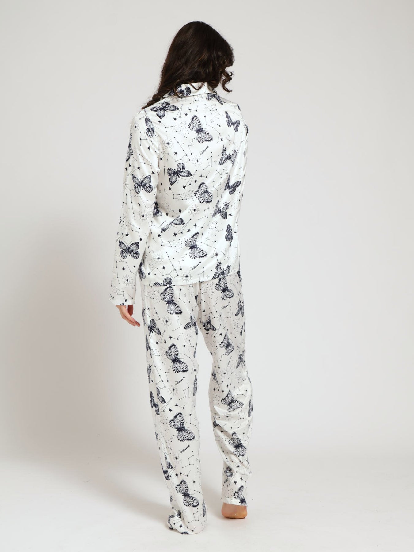 Long Sleeve Satin Button Through Shirt & Pants Pj Set - White