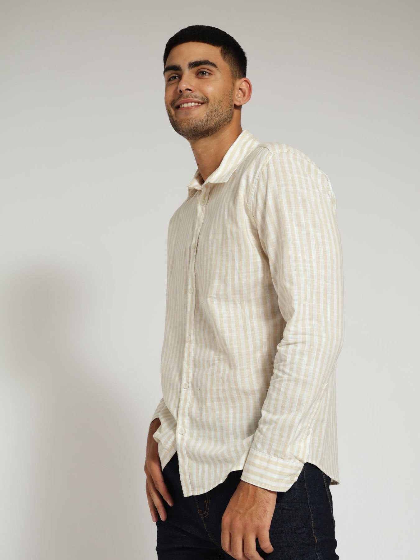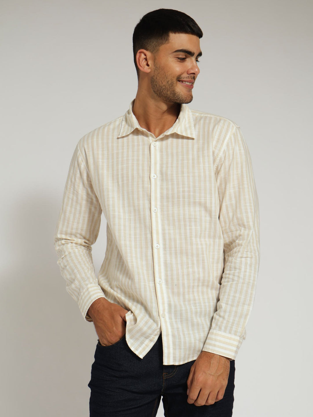 Long Sleeve Seersucker Stripe Shirt - Off White