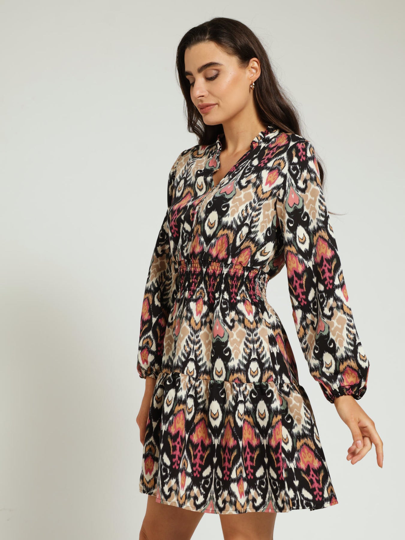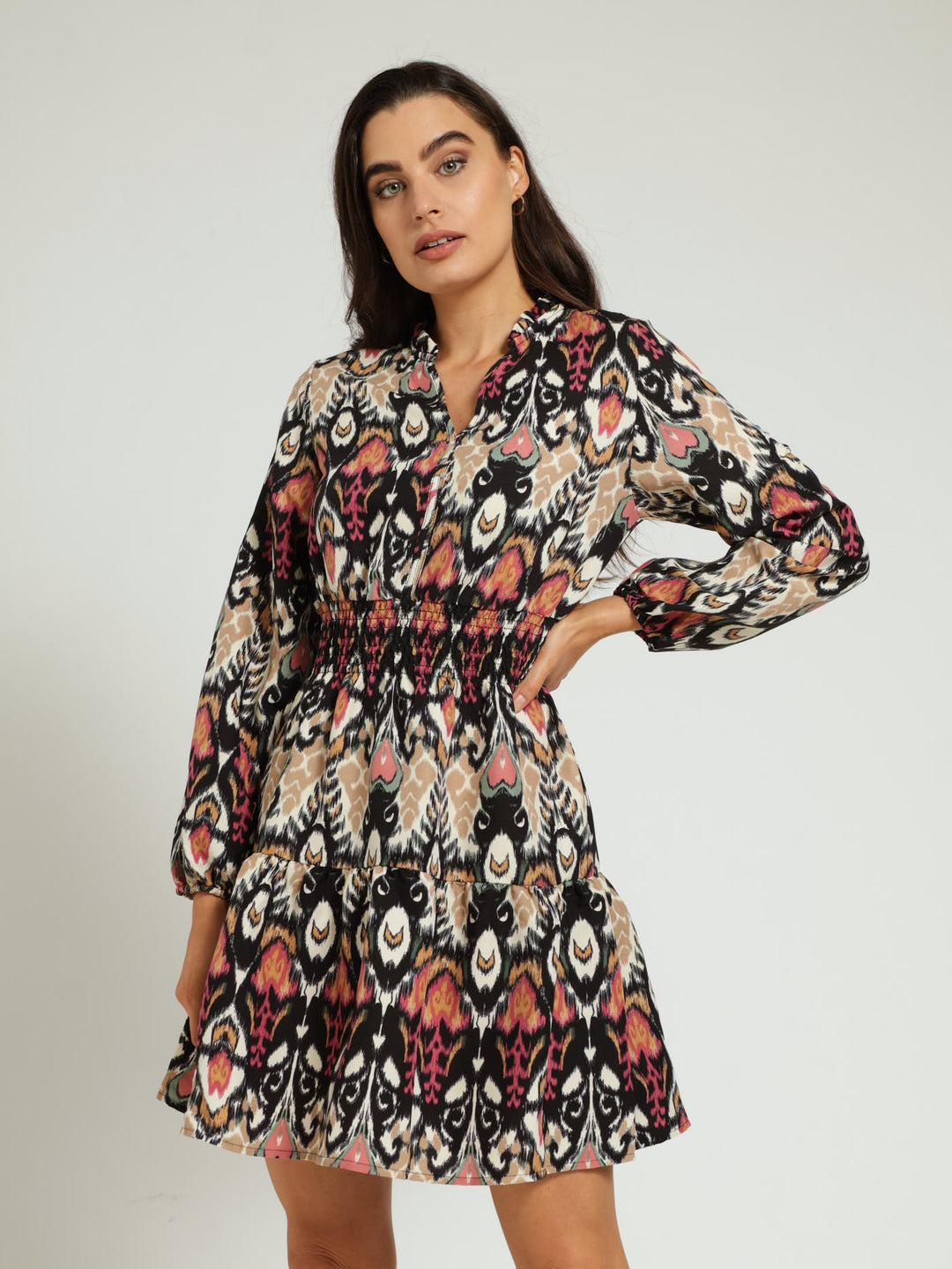 Add some flare to your wardrobe with this stylish long sleeve shirred waist mini dress! Elevate your style and make a statement with this versatile and flattering piece. Show off your unique personality and turn heads with confidence.