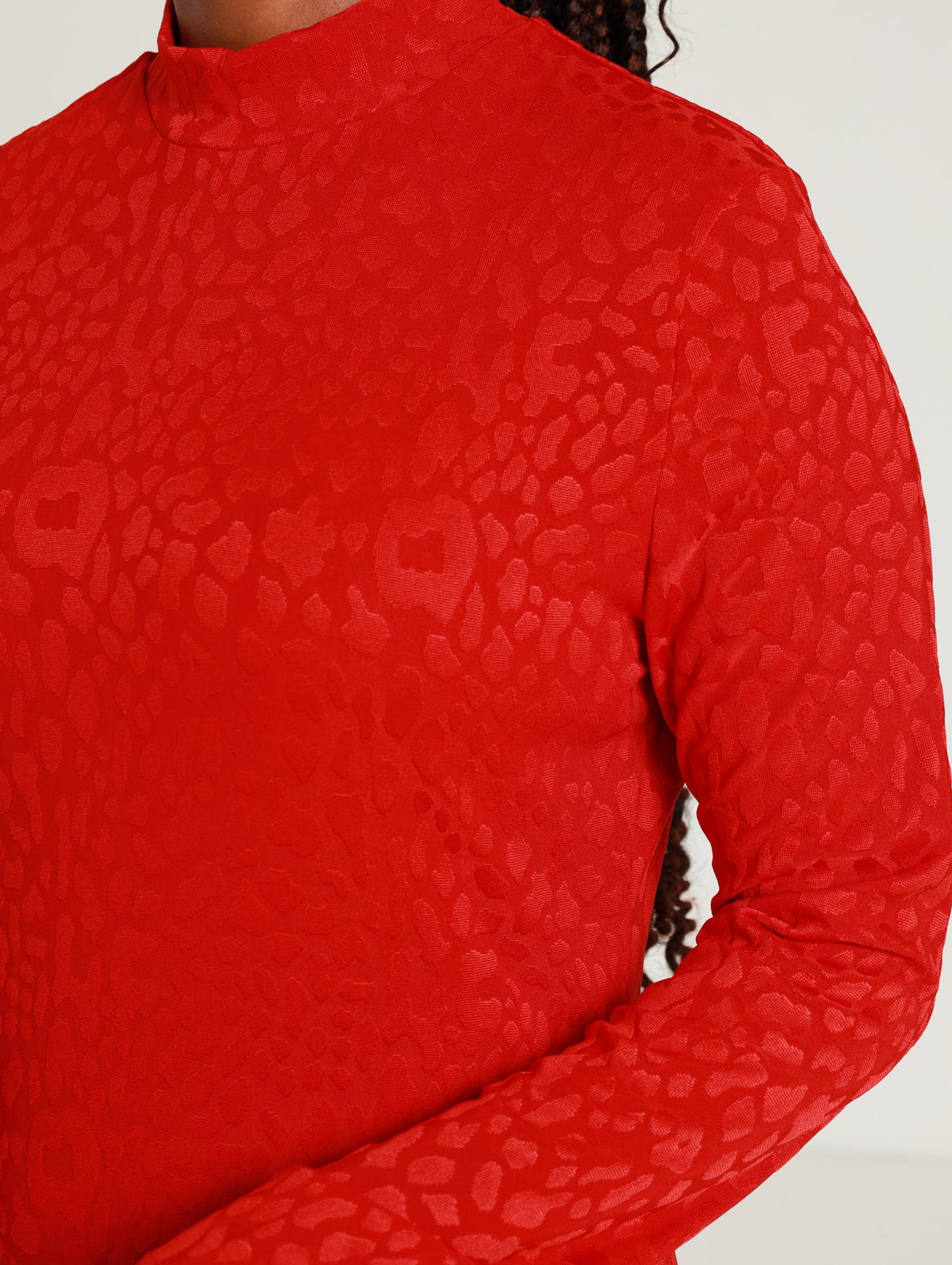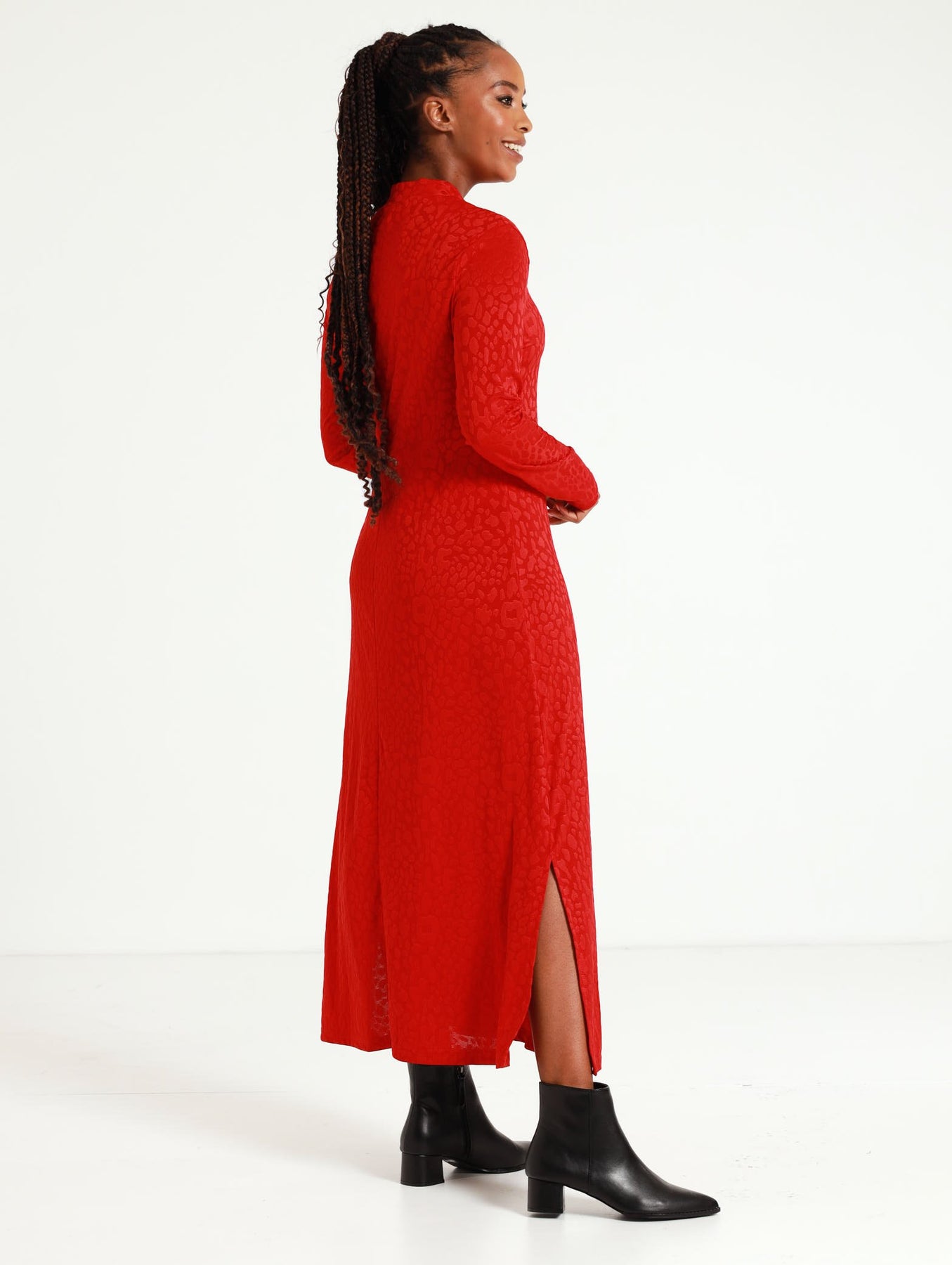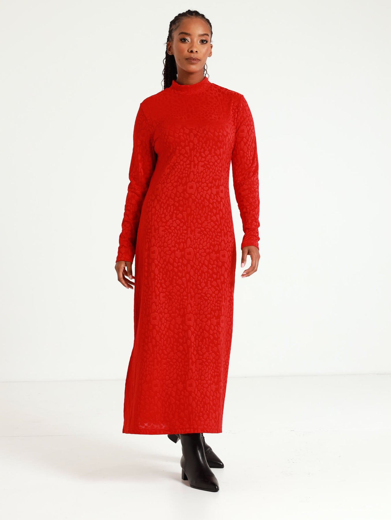 Long Sleeve Turtle Knit Maxi Dress - Red