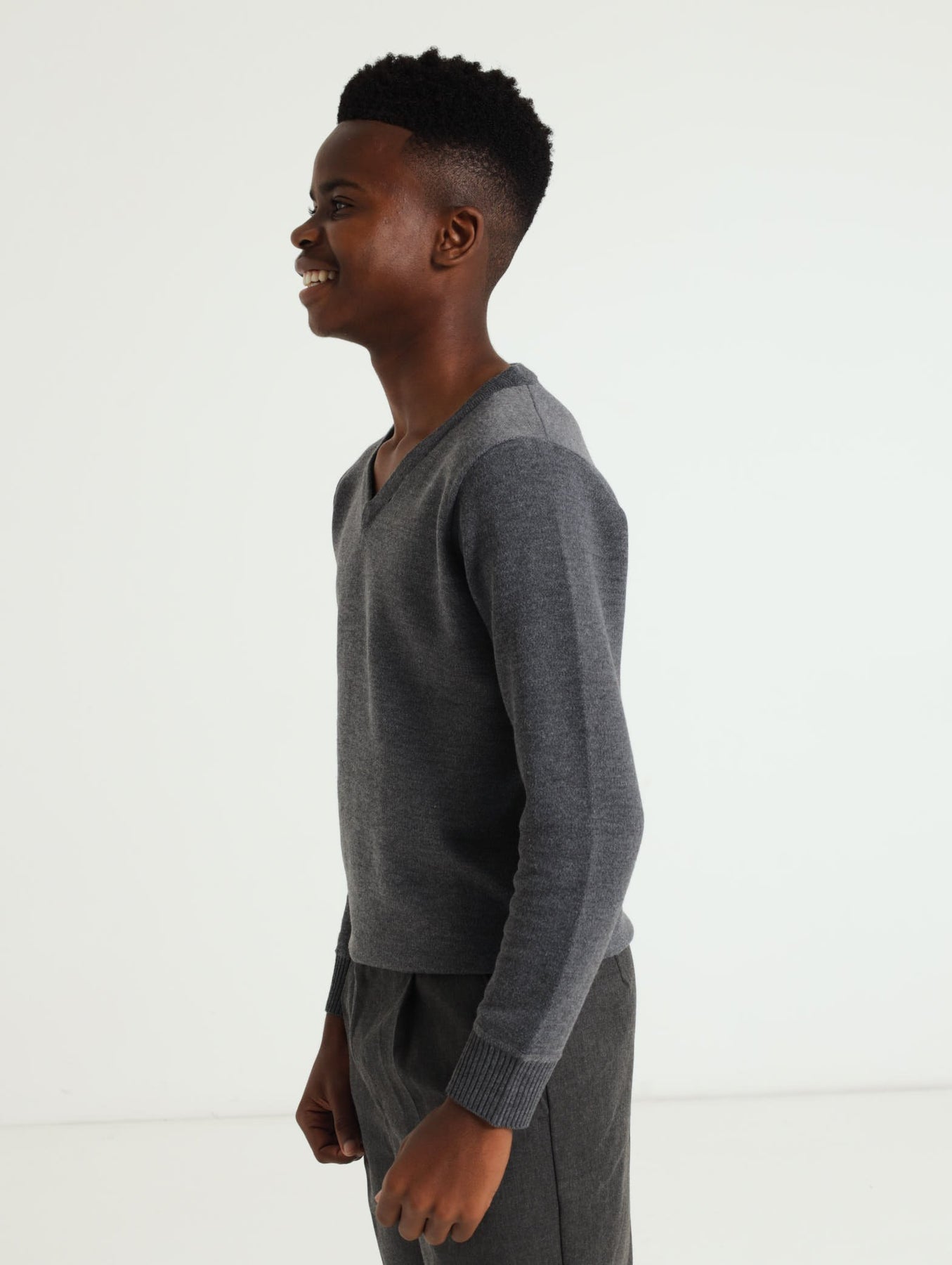 Long Sleeve V-Neck School Jersey - Mid Grey