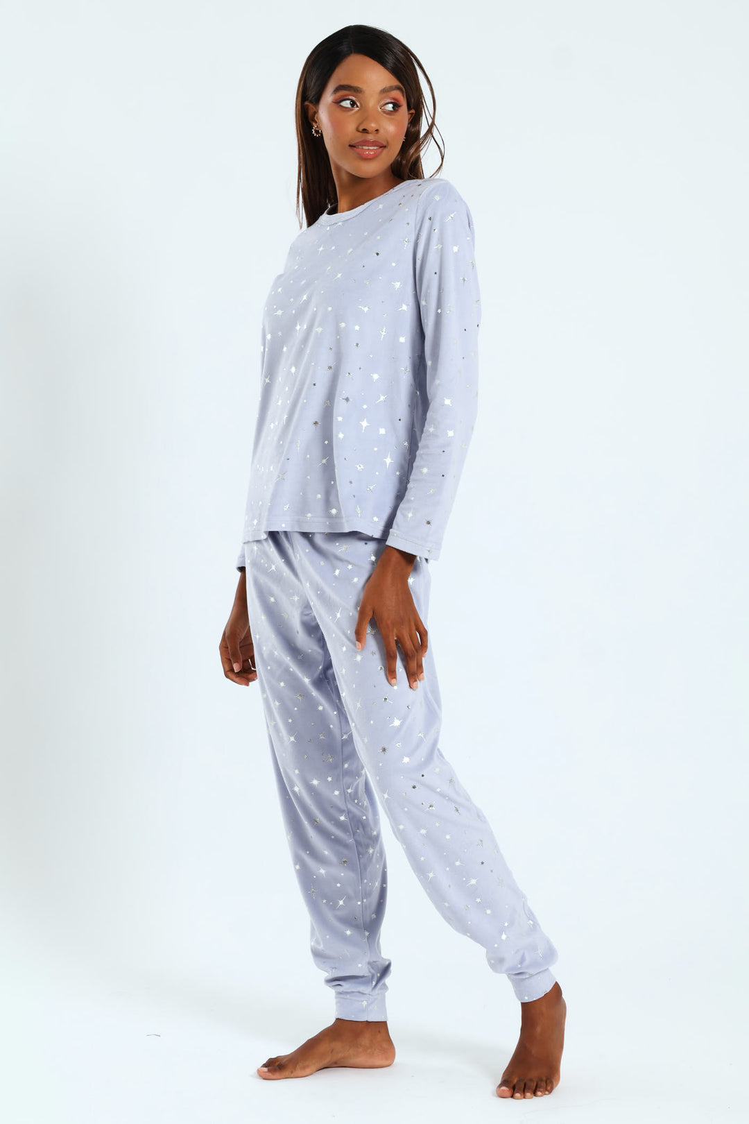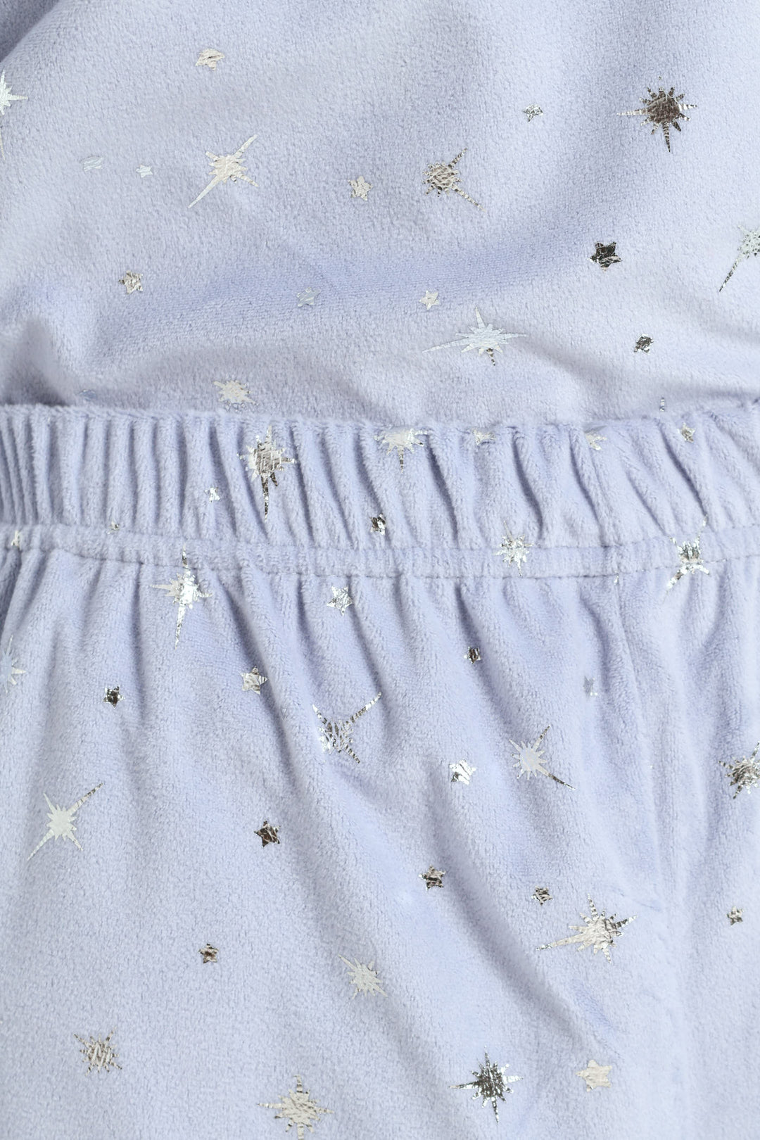 Long Sleeve Velour Embossed Star Top & Pants Set - Light Blue