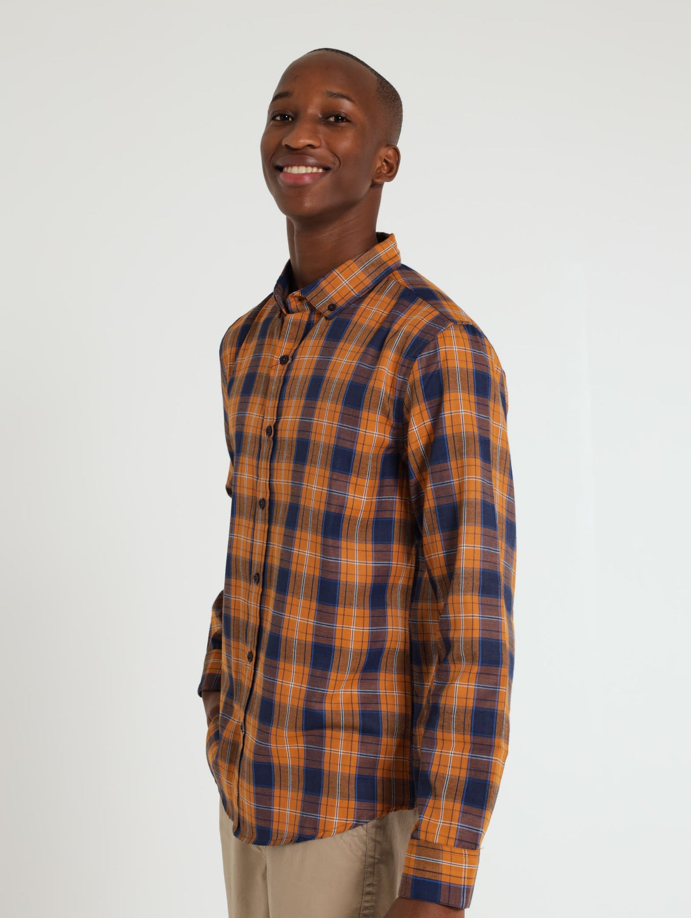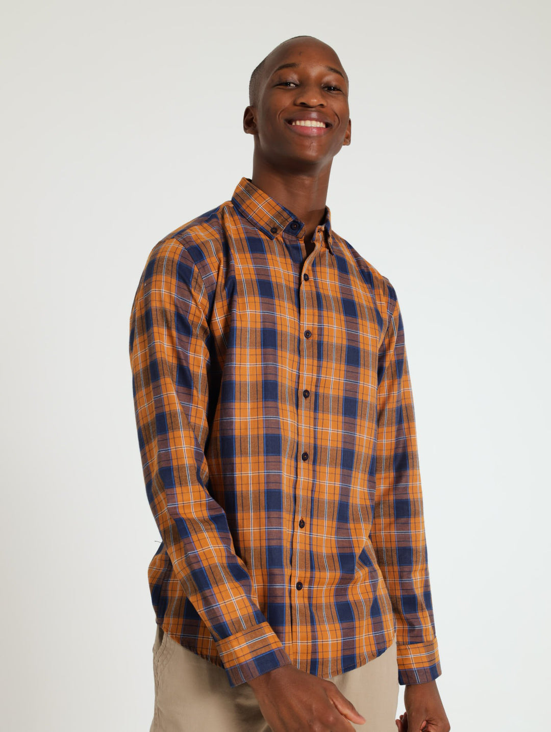 Long Sleeve Woven Check Shirt - Mustard