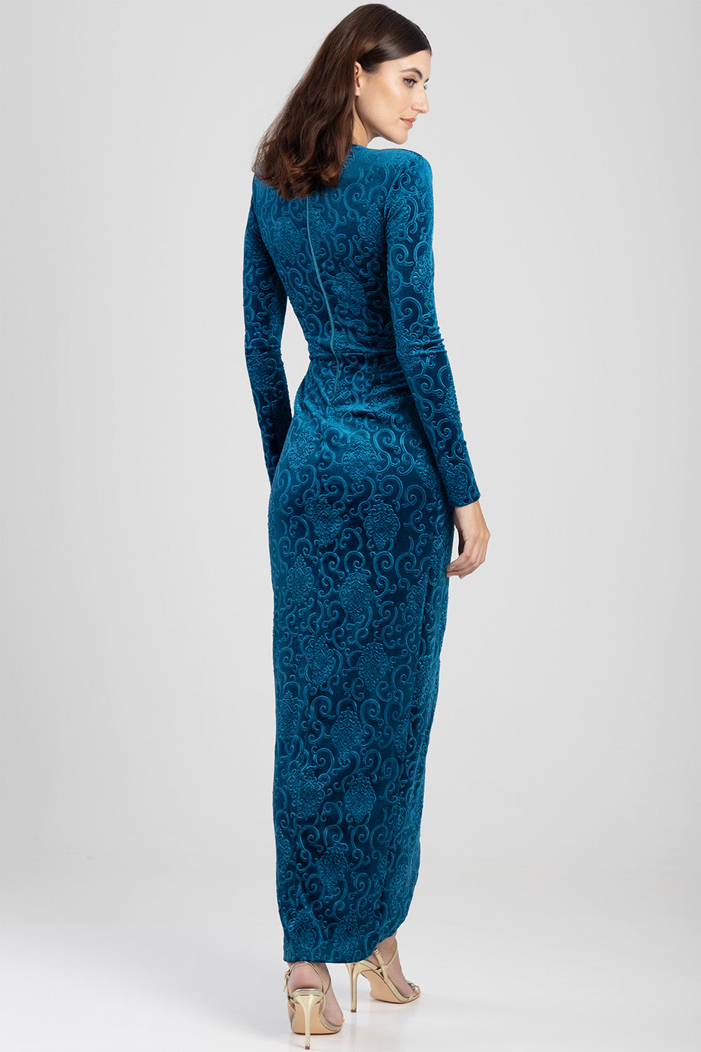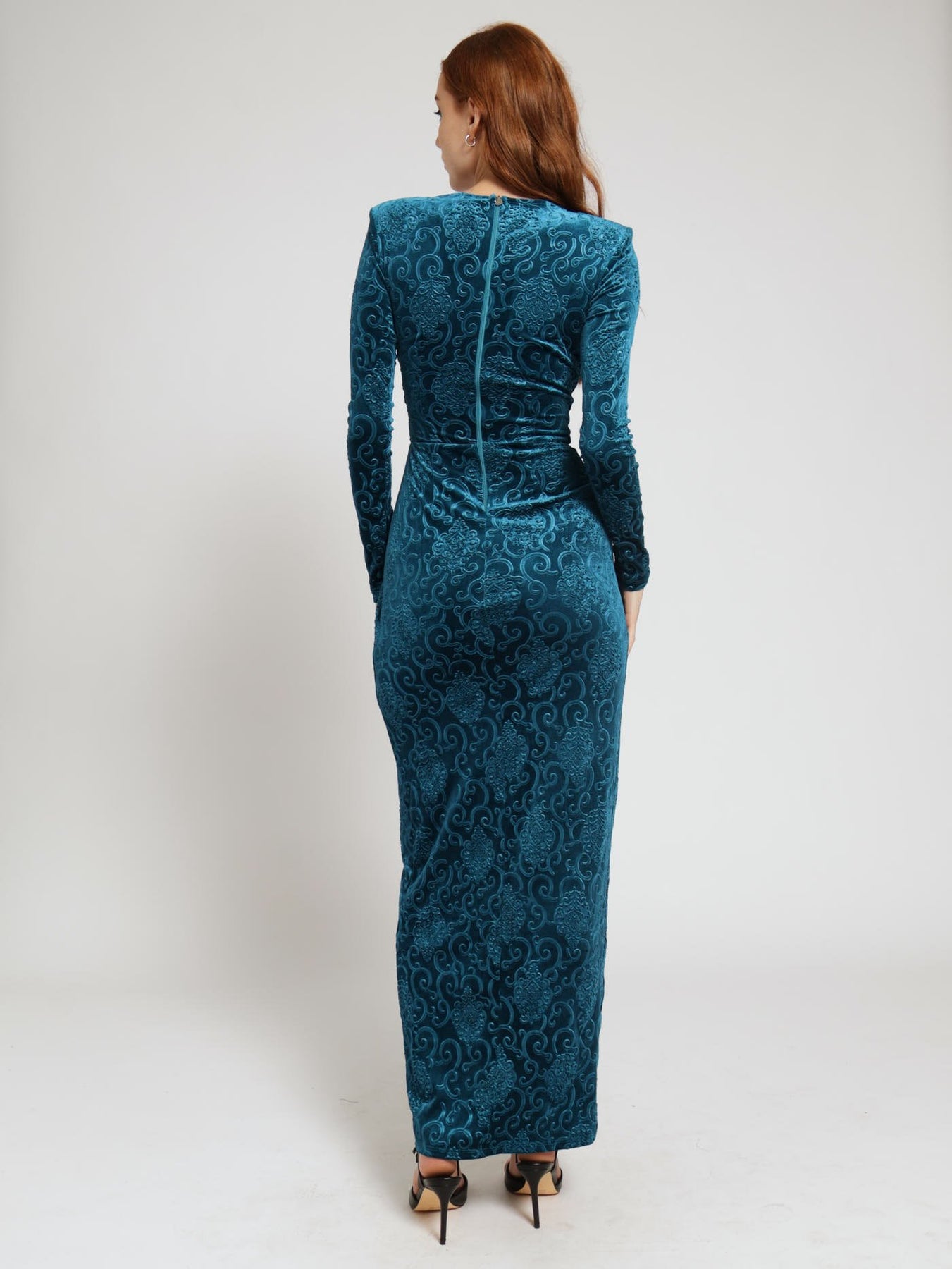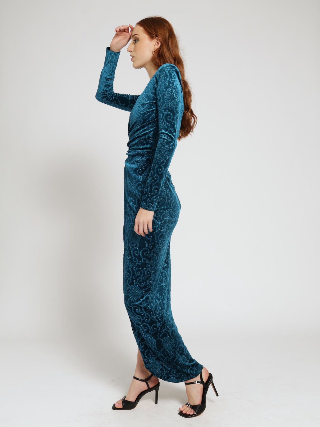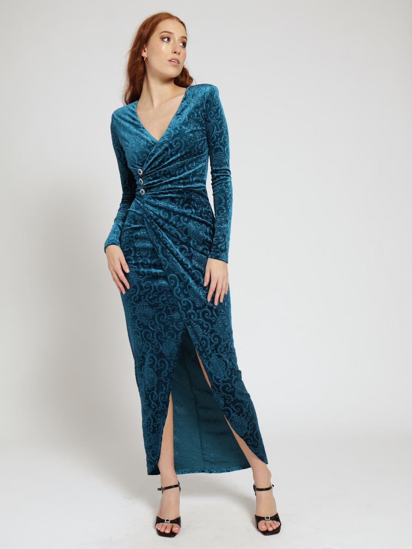 Long Sleeve Wrap Velvet Maxi Dress - Teal