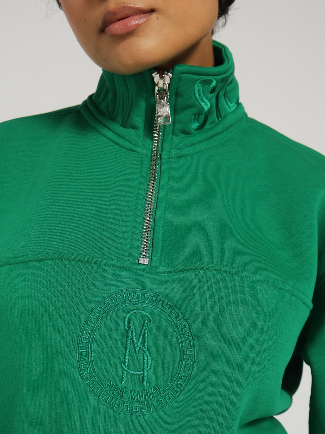Maxine Collared Fleece Sweat Top With 1/4 Zip - Green