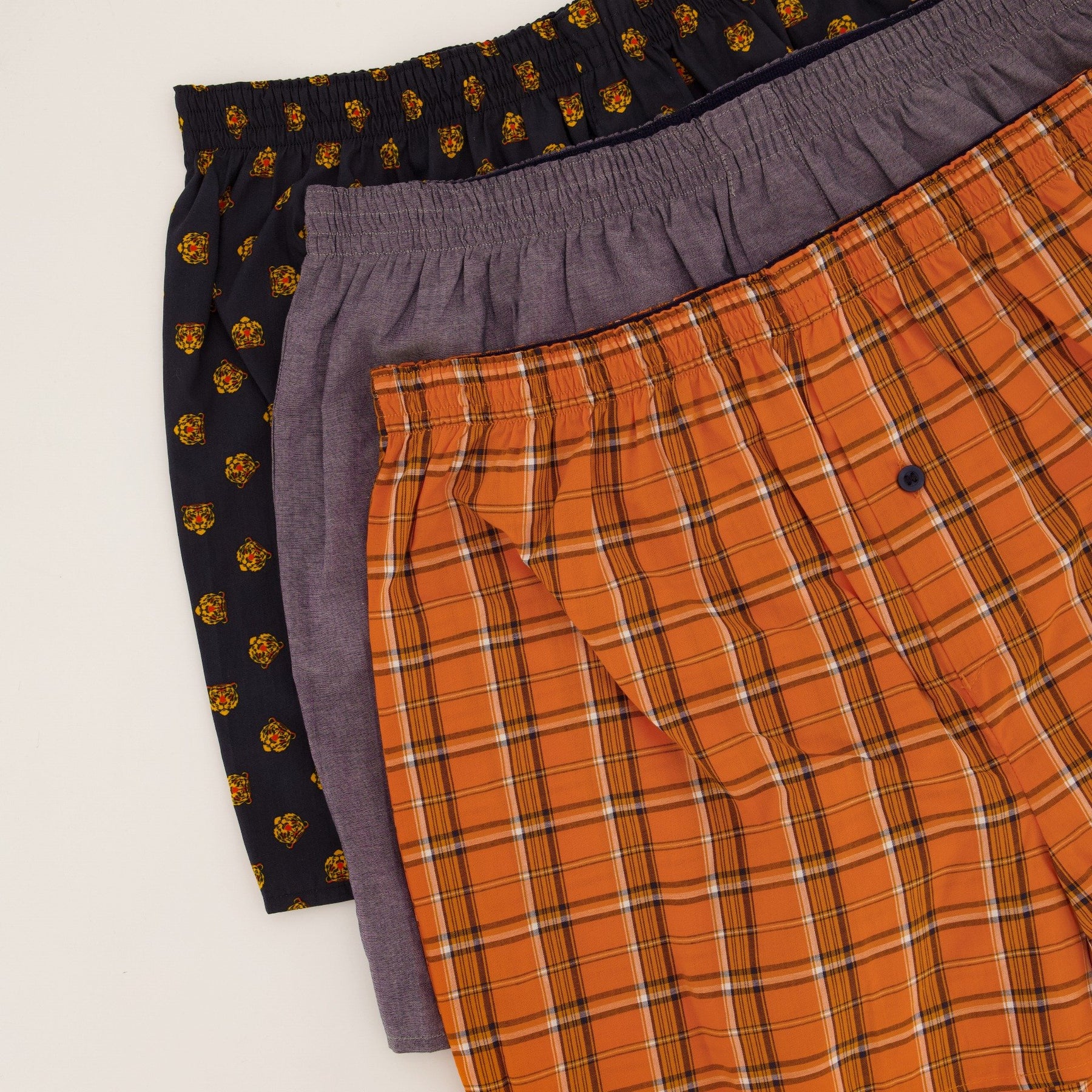 These 100% cotton relaxed fit boxer shorts feature a tiger print design, an elasticated waist for ultimate comfort and durability and front button closures.
