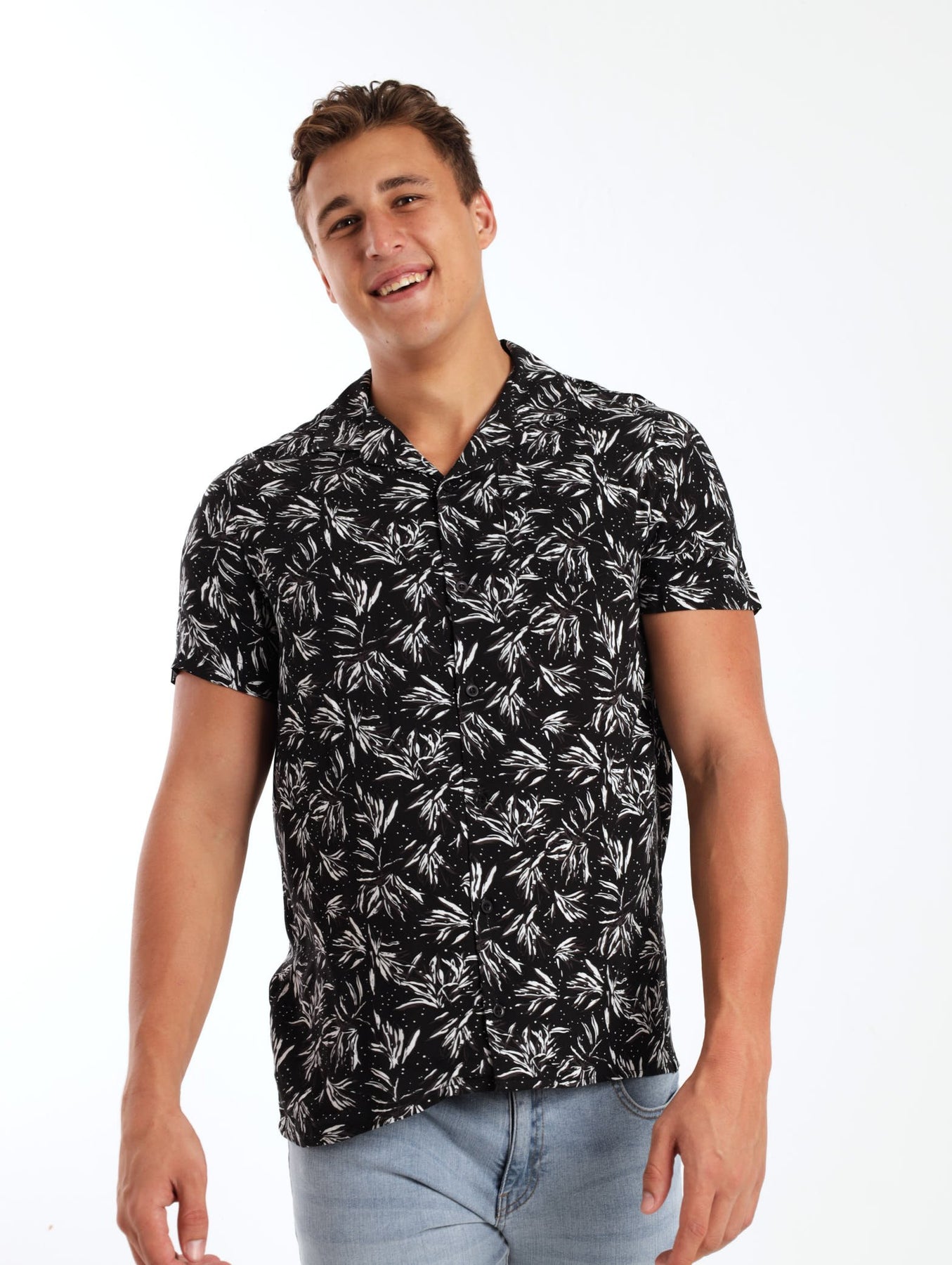 Men's Fine Floral Shirt - Black