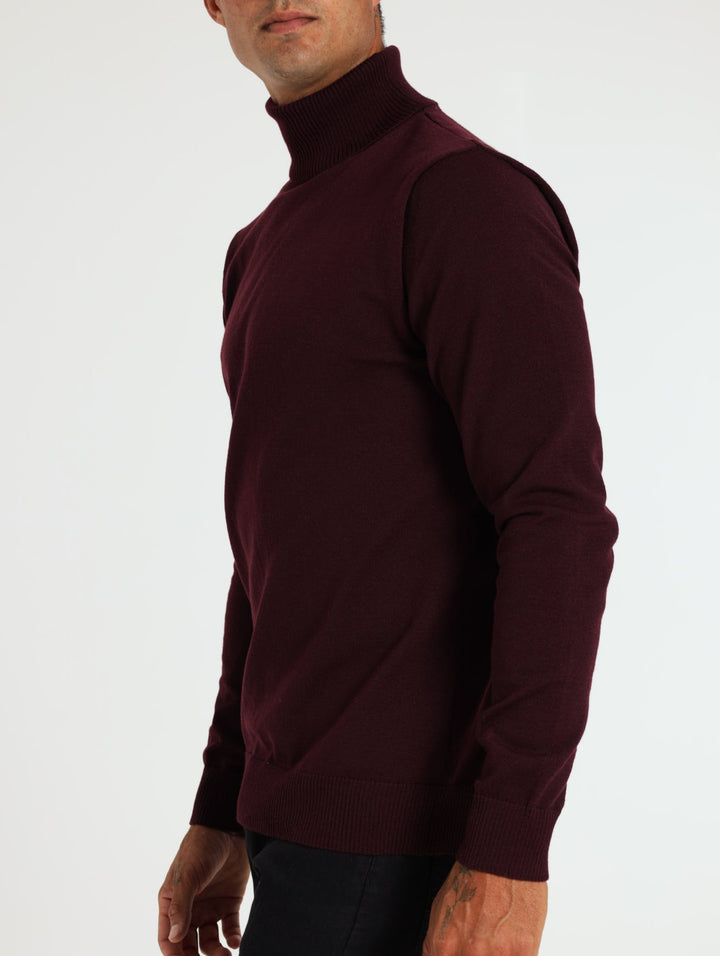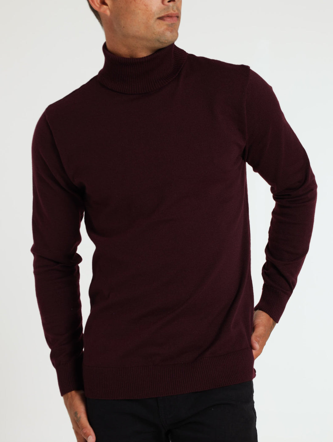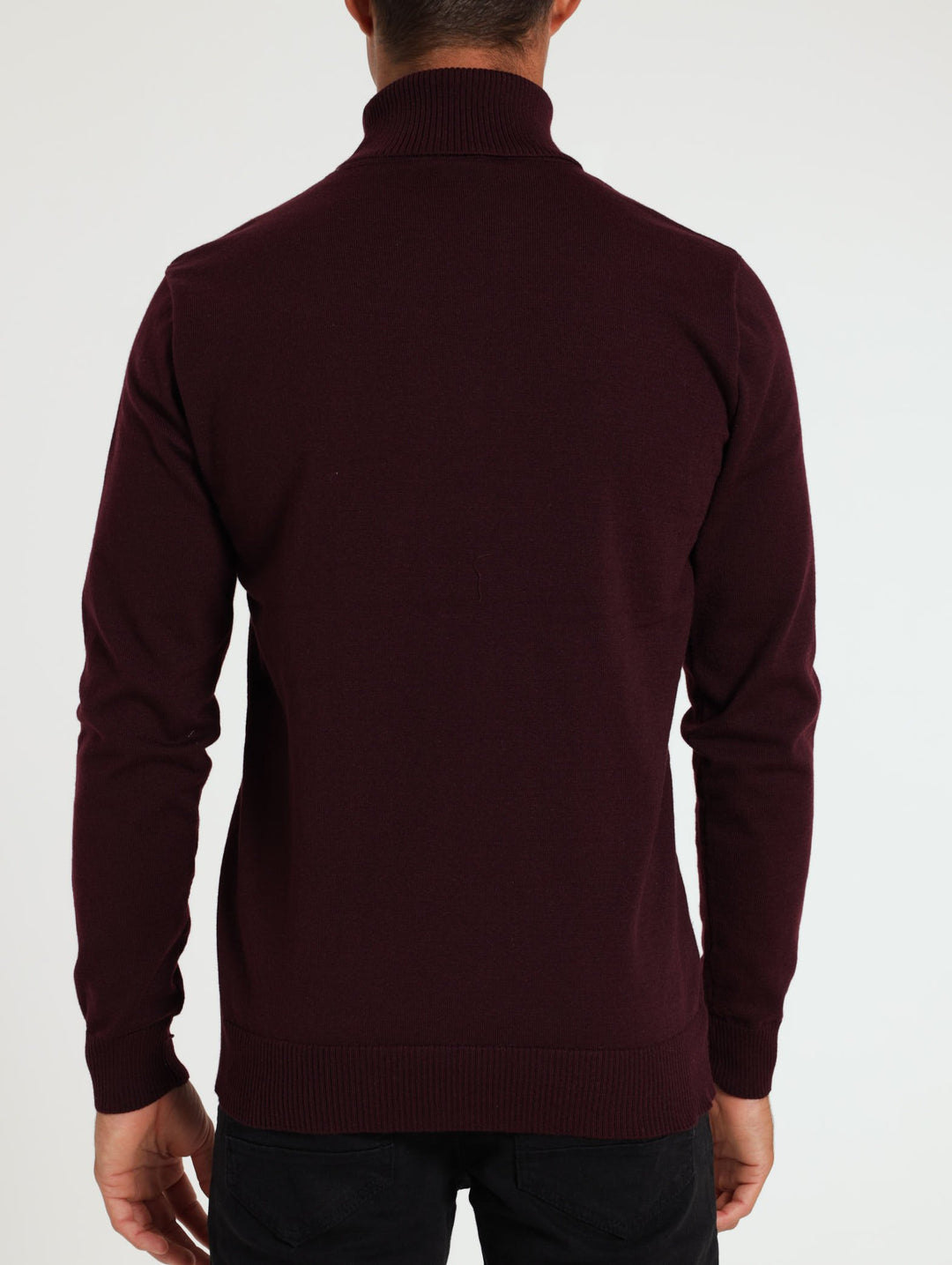 Men's Light Gauge Polo Neck Pullover - Burgundy